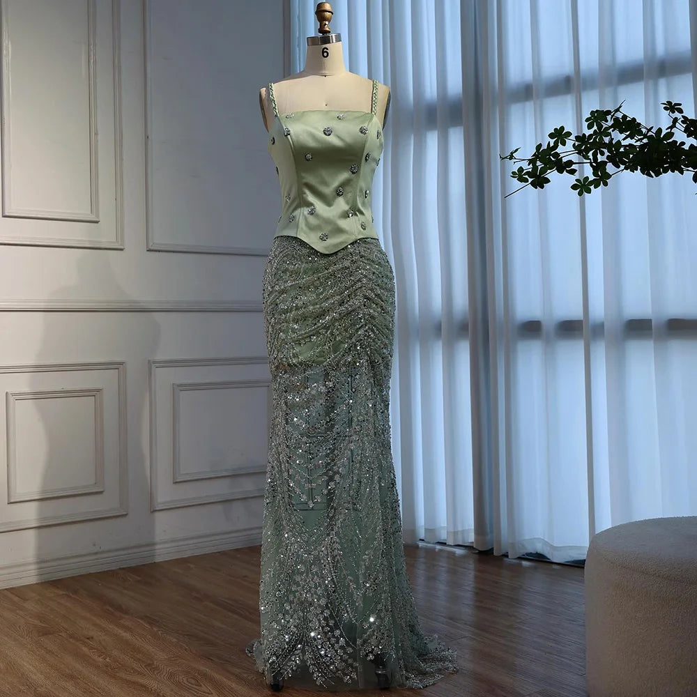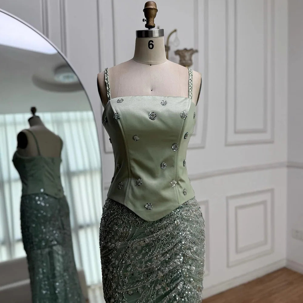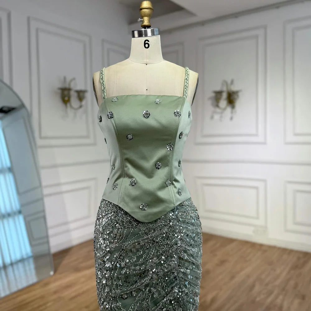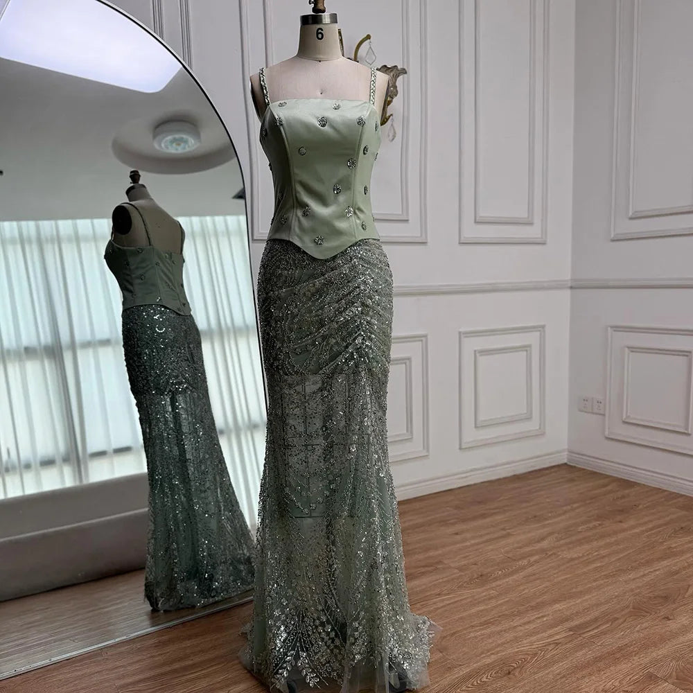 Luxury Sage Green Beaded 1 Pieces Evening Dress LA72977
