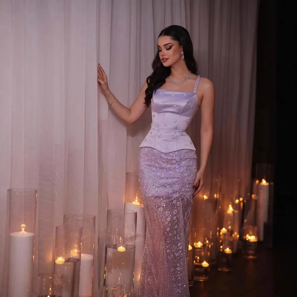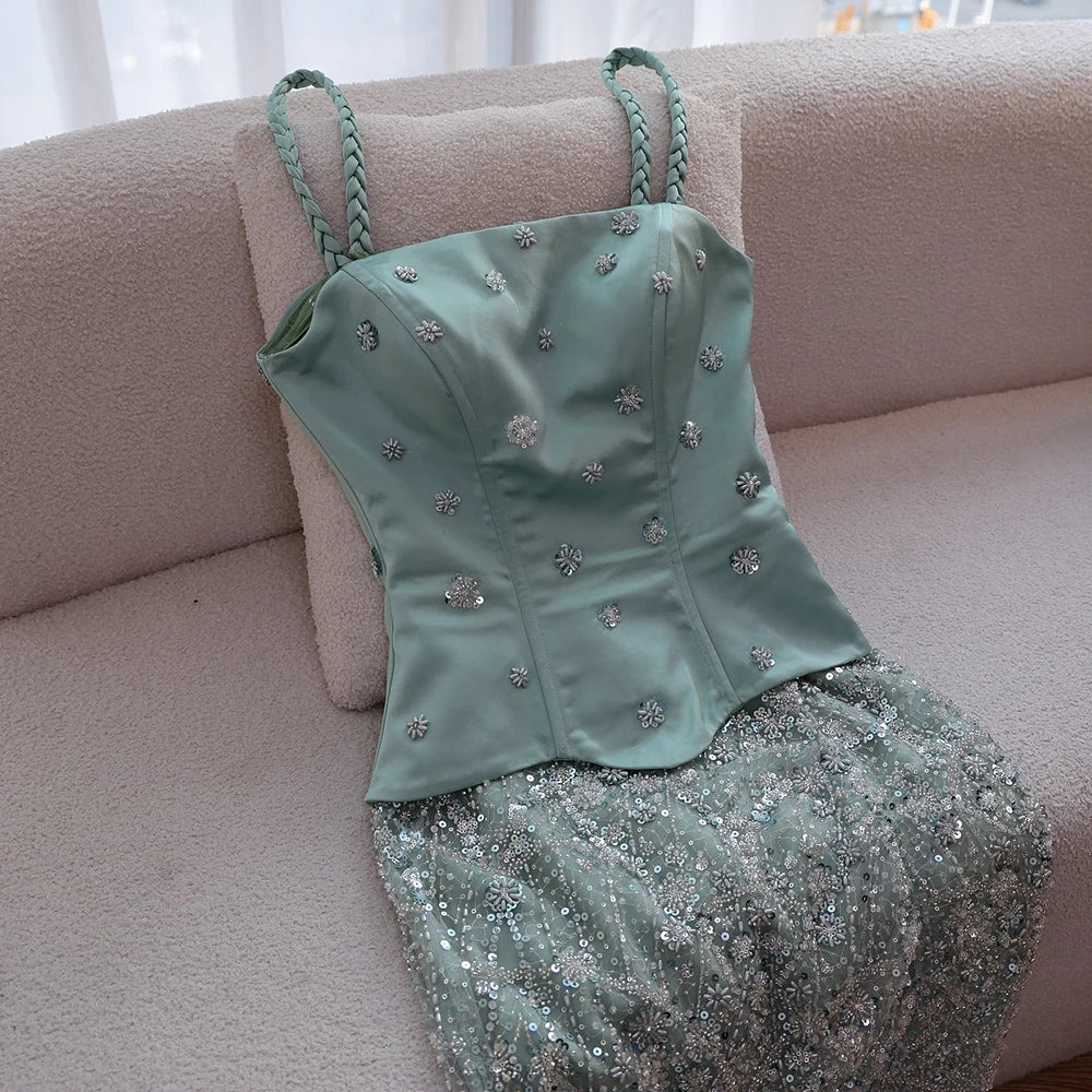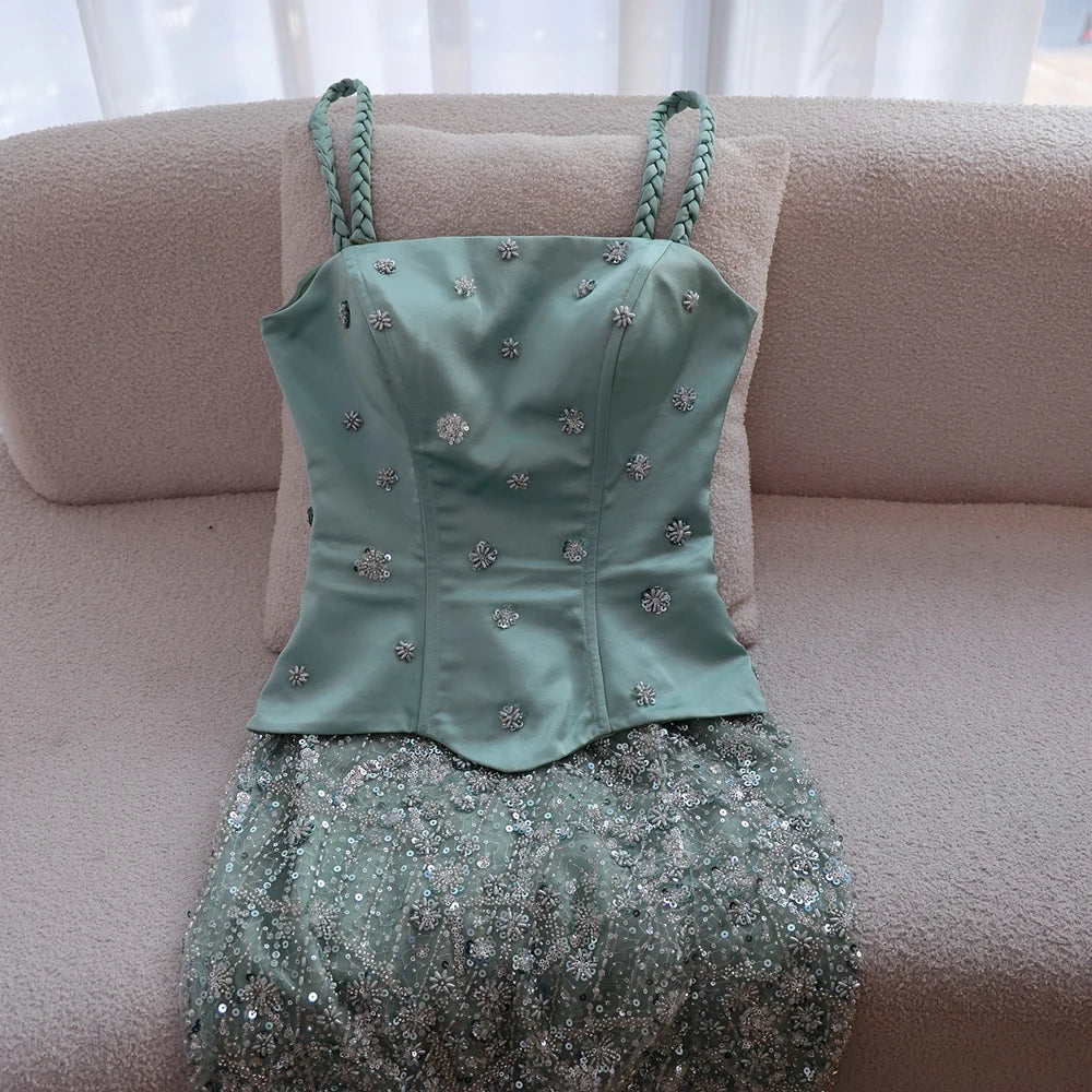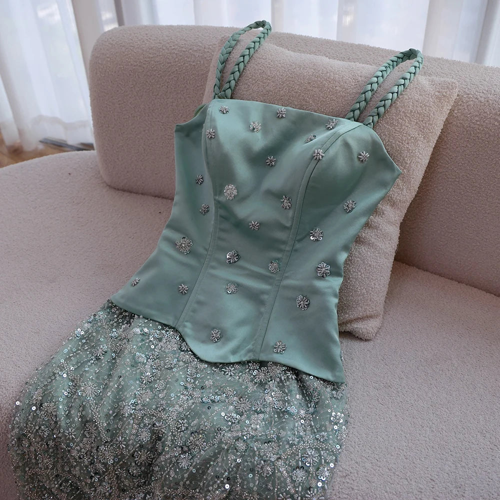 Luxury Sage Green Beaded 1 Pieces Evening Dress LA72977