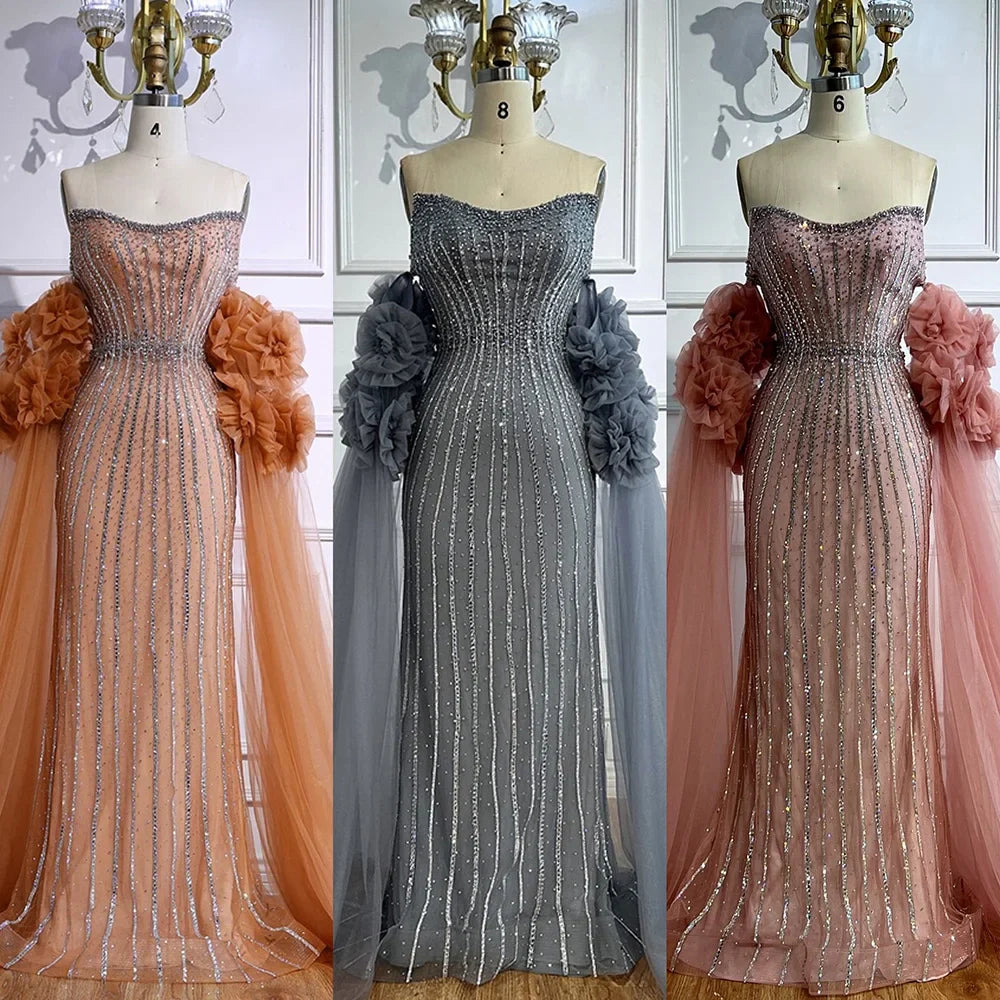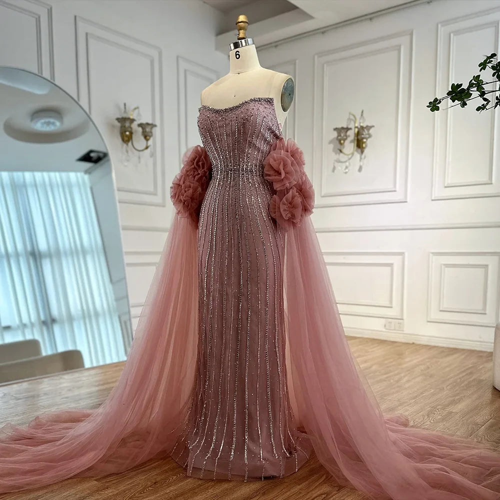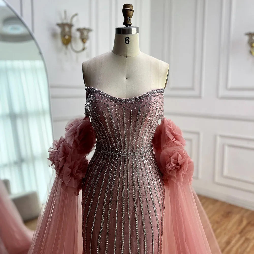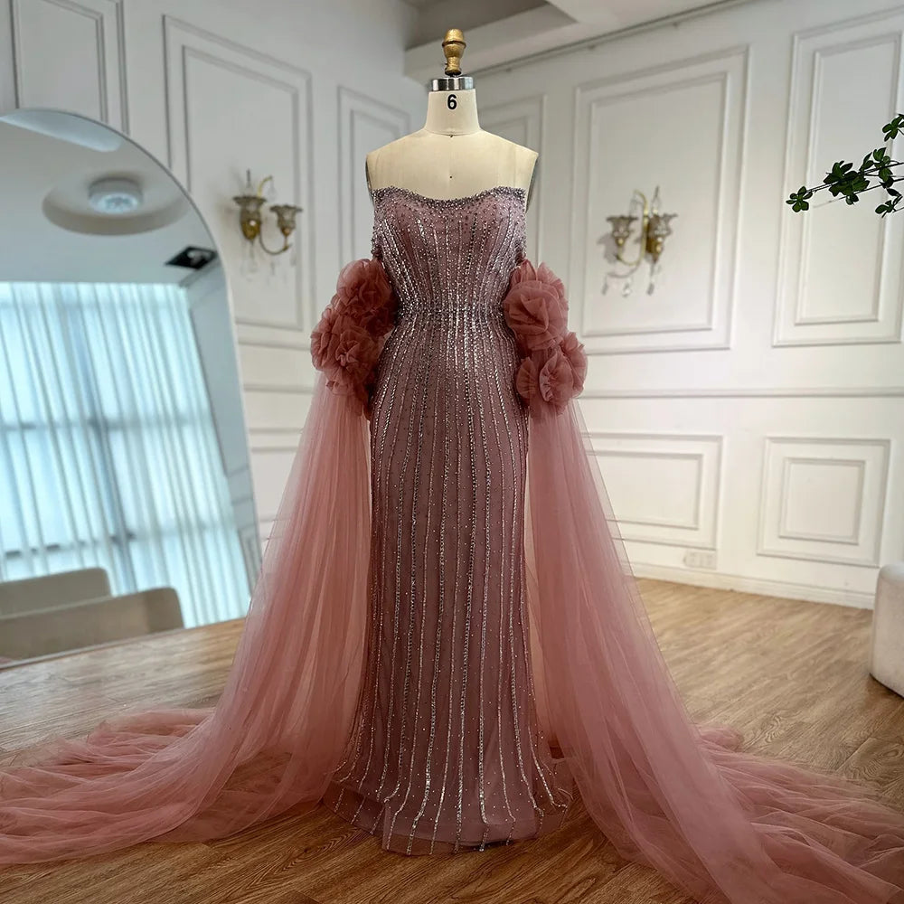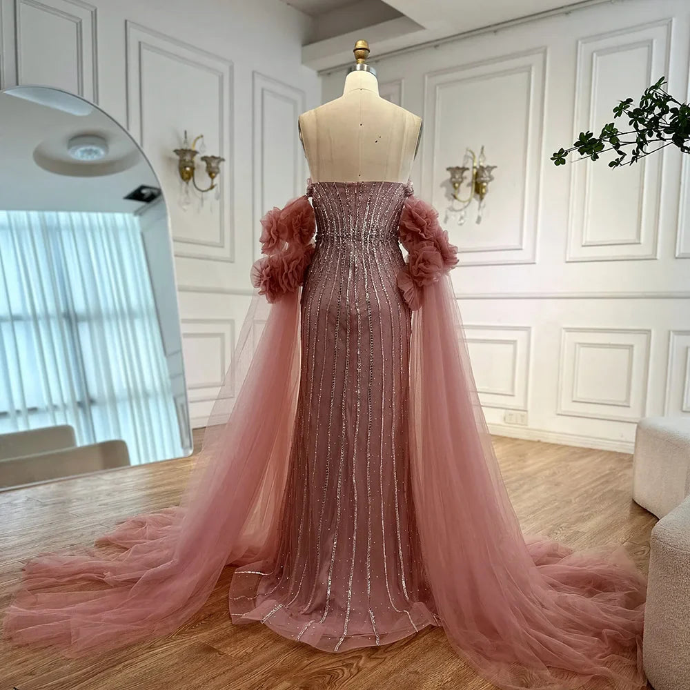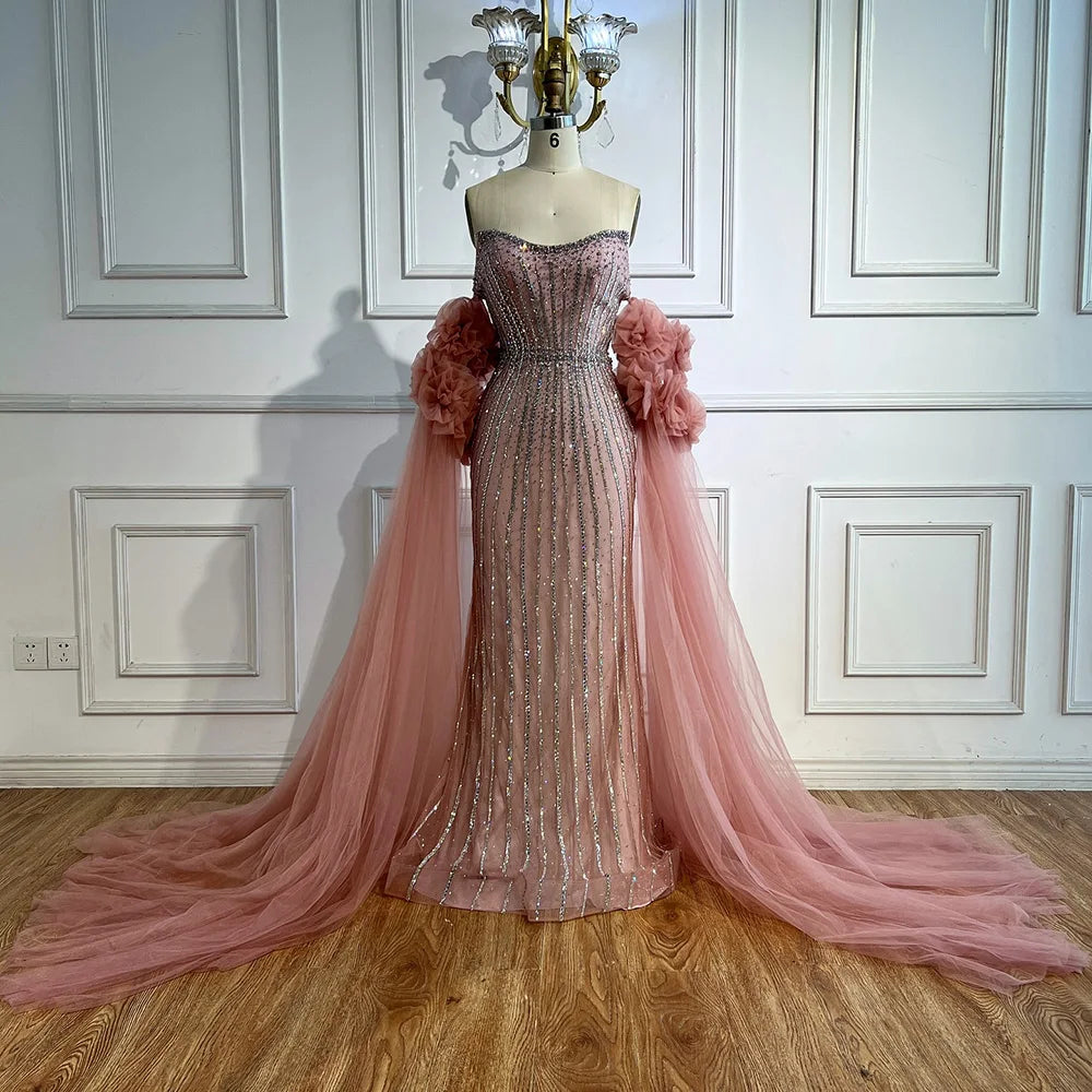 Luxury Pink Beaded Mermaid Arabic Evening Dress with Cape LA73019