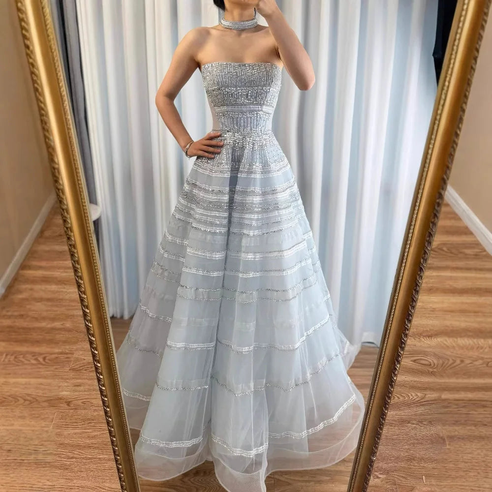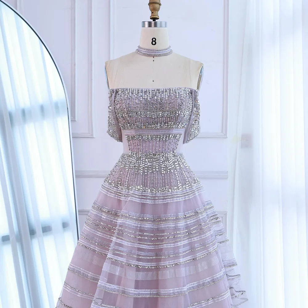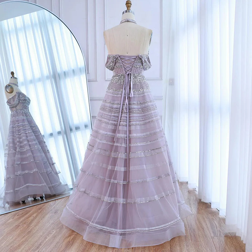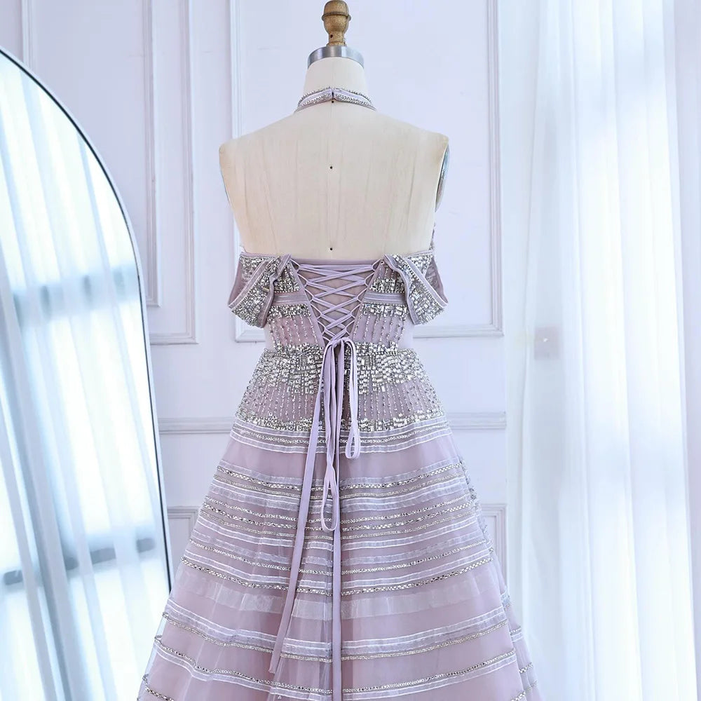 Luxury Pink Off Shoulder A-Line Beaded Evening Dress LA73079