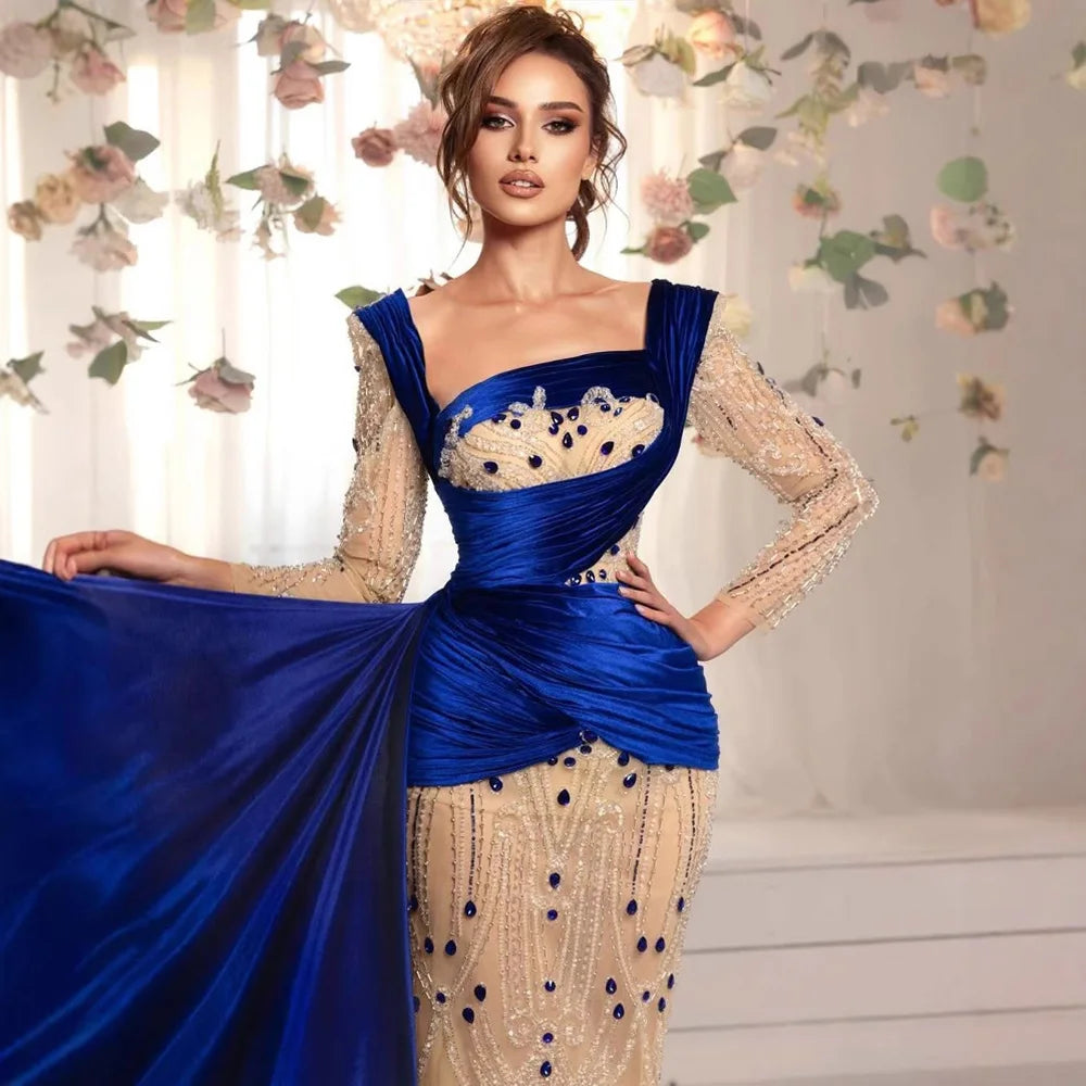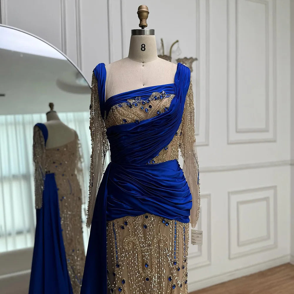 Luxury Royal Blue Velvet Beaded Mermaid Evening Dress LA72988
