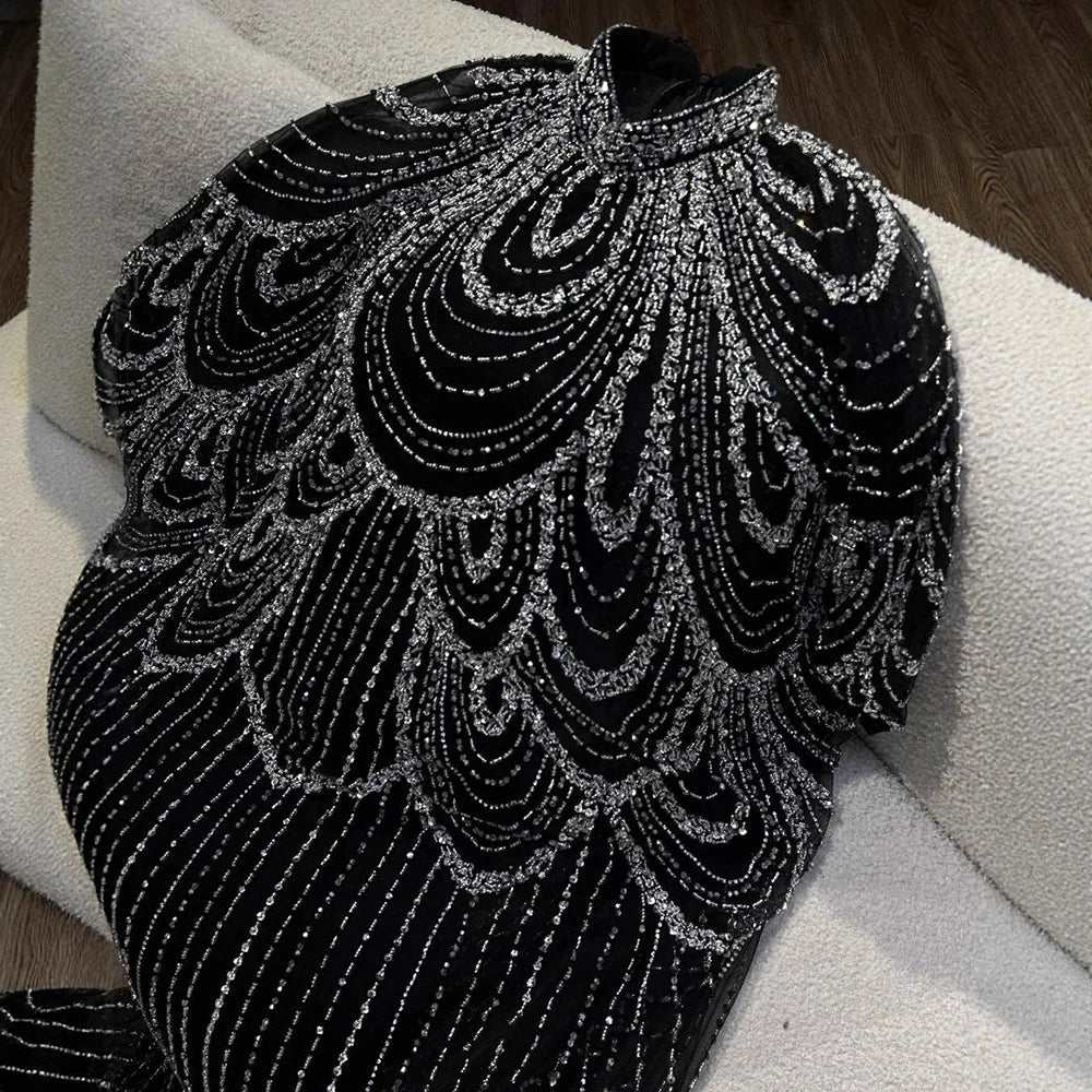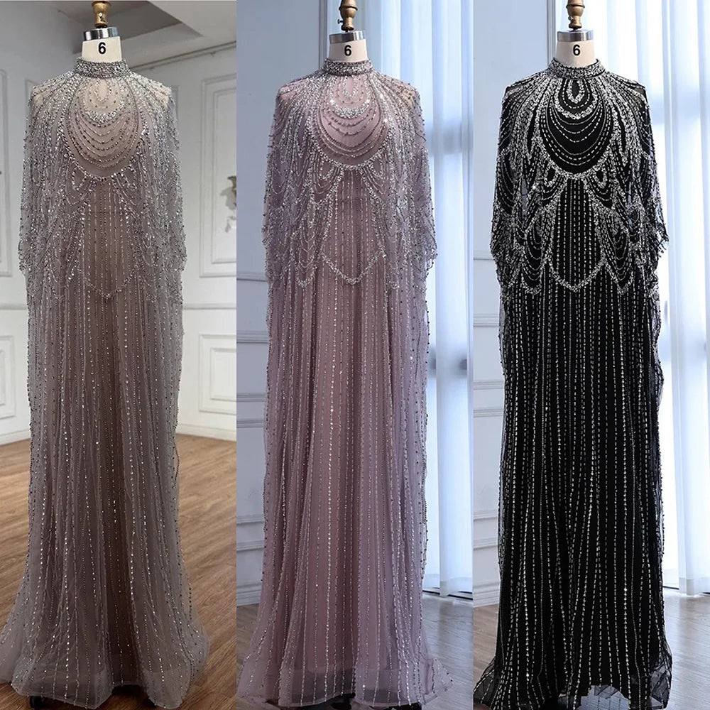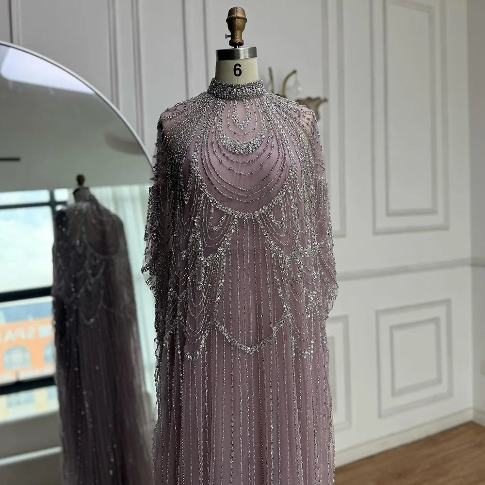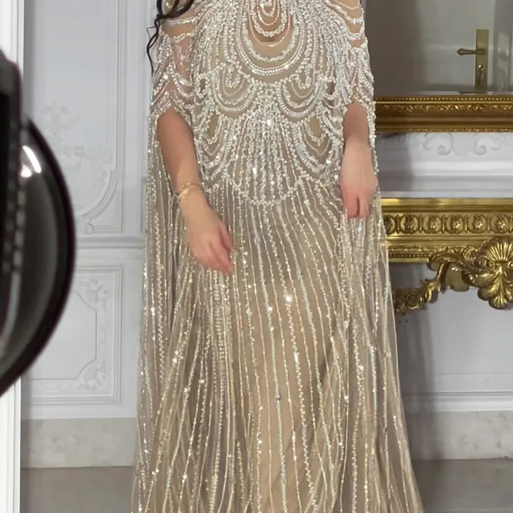 Luxury Silver Nude Beaded Mermaid Evening Dress with Cape LA72484A