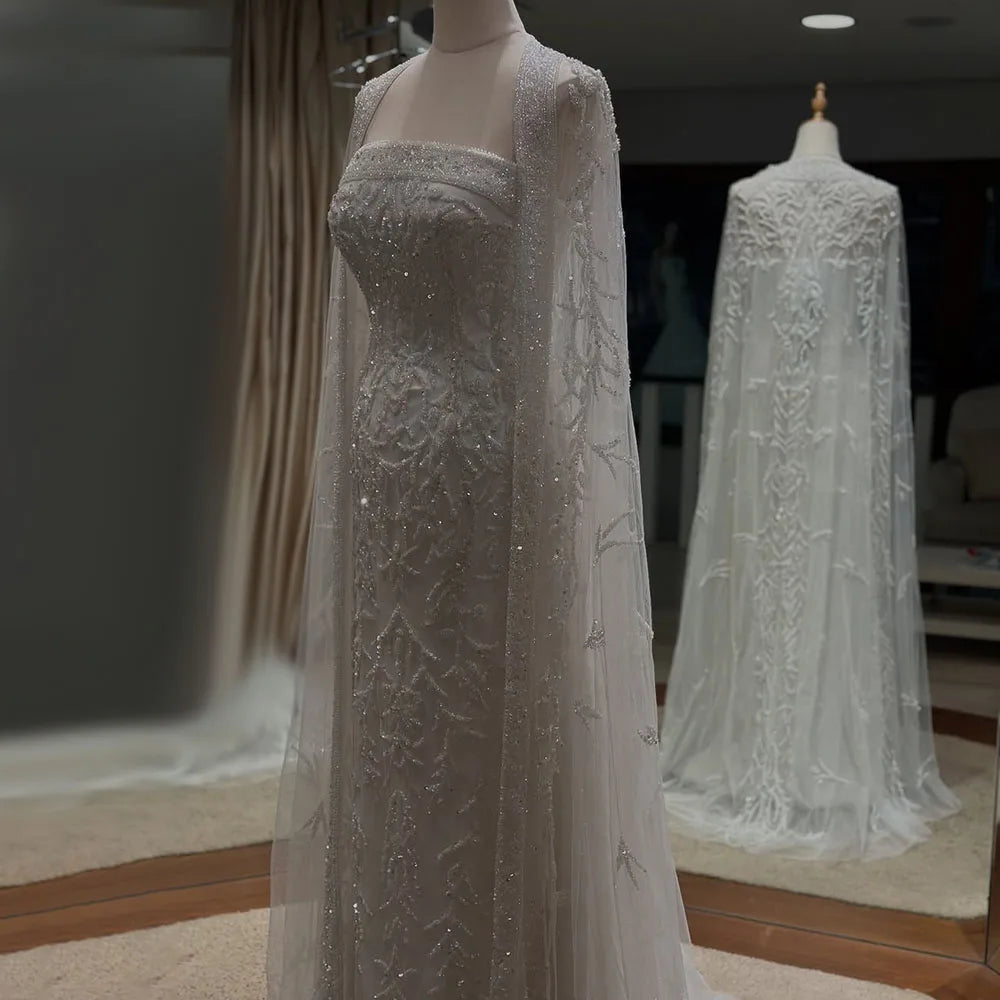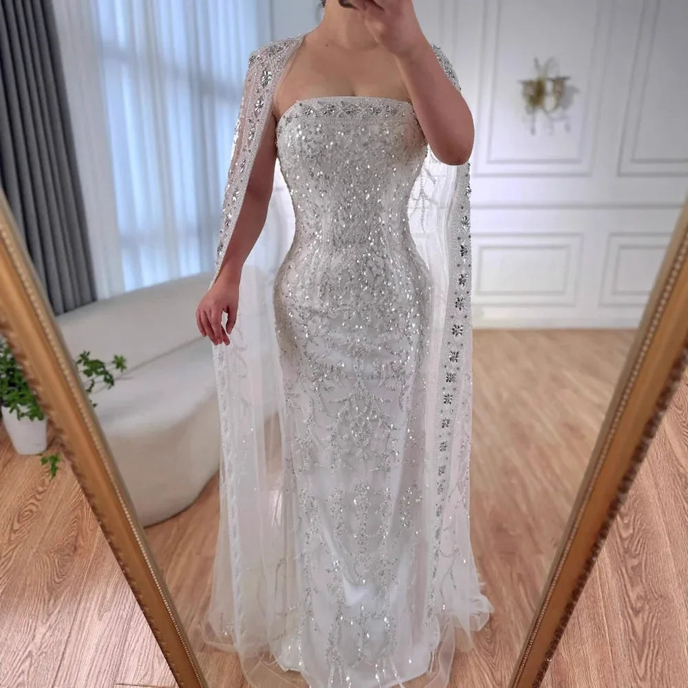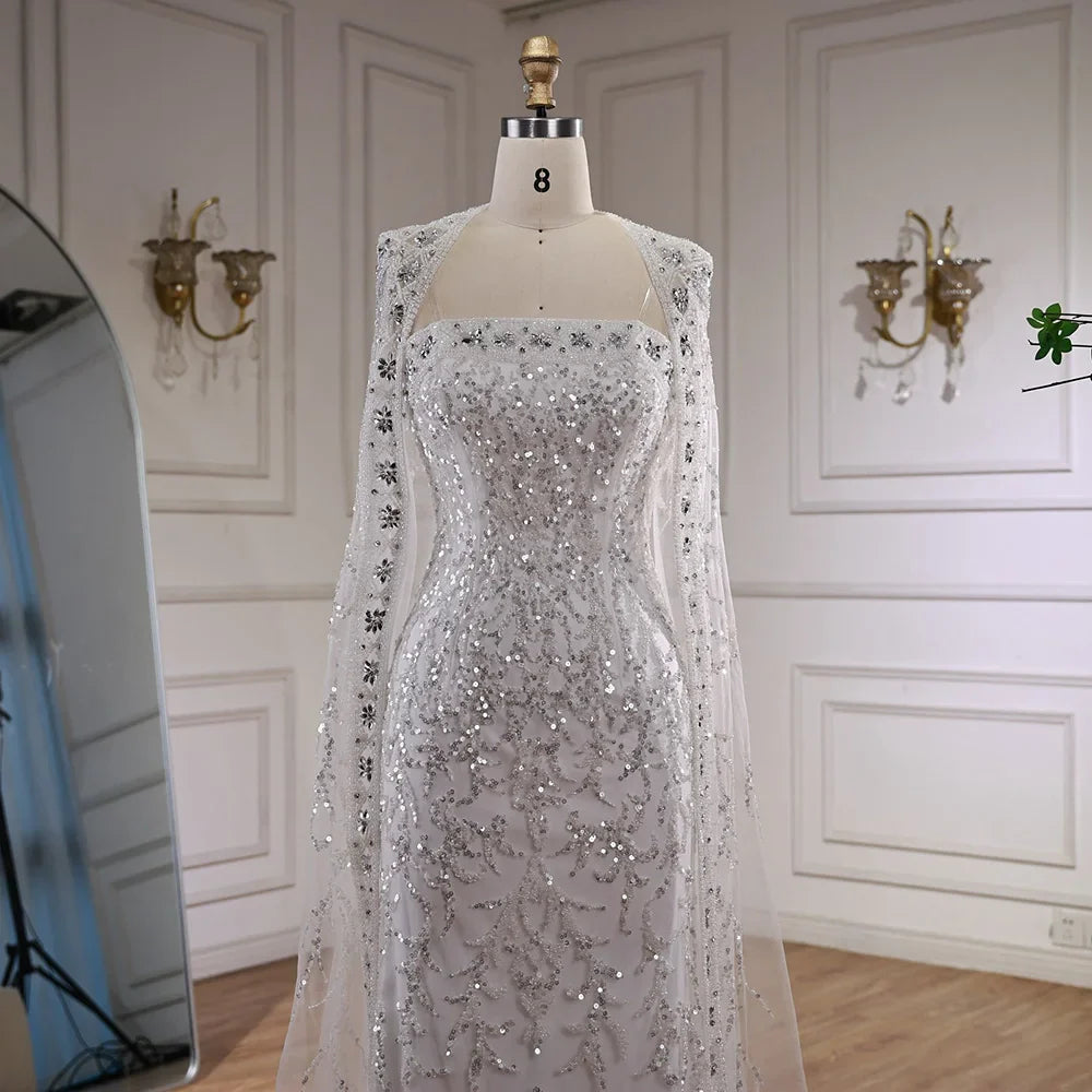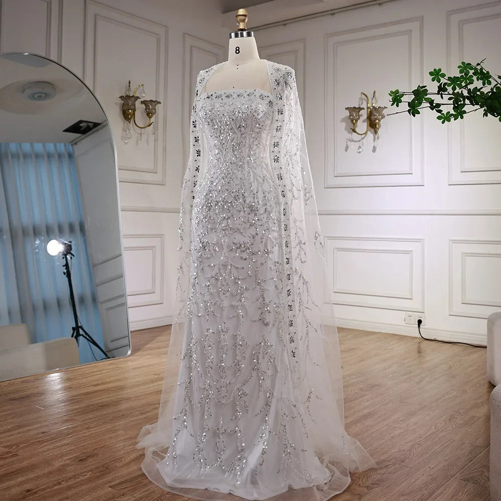 Luxury White Dubai Arabia Beading Evening Dress With Cape LA72870