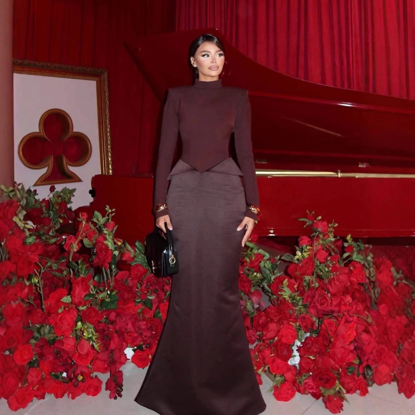 Elegant Brown French Simple Mermaid Evening Dress Minimalist LA73321