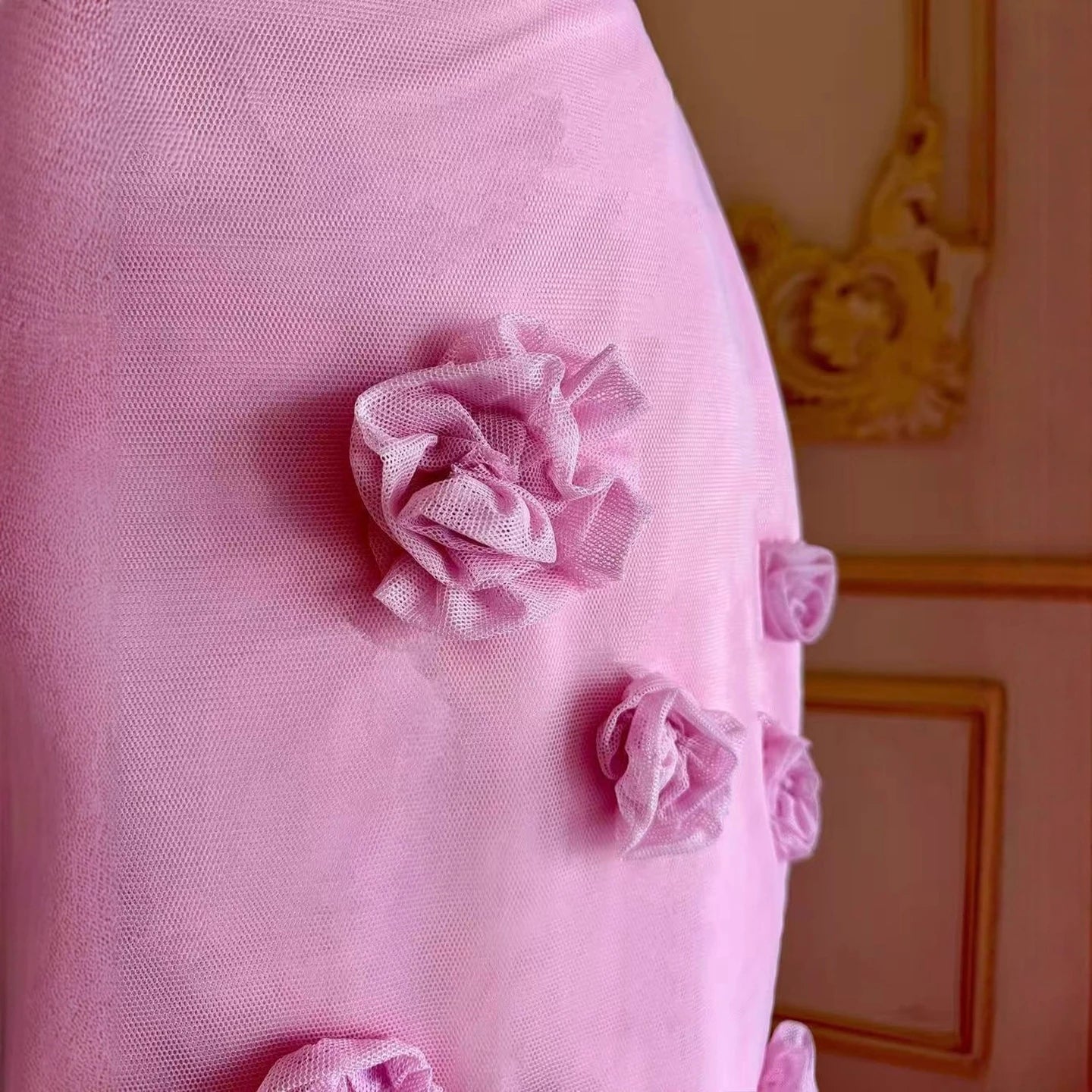 Elegant Dubai Arabic off shoulder pink 3D flower mermaid evening dress for women wedding or formal events, charming and luxurious style.