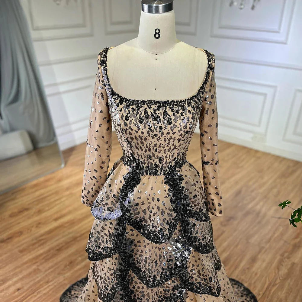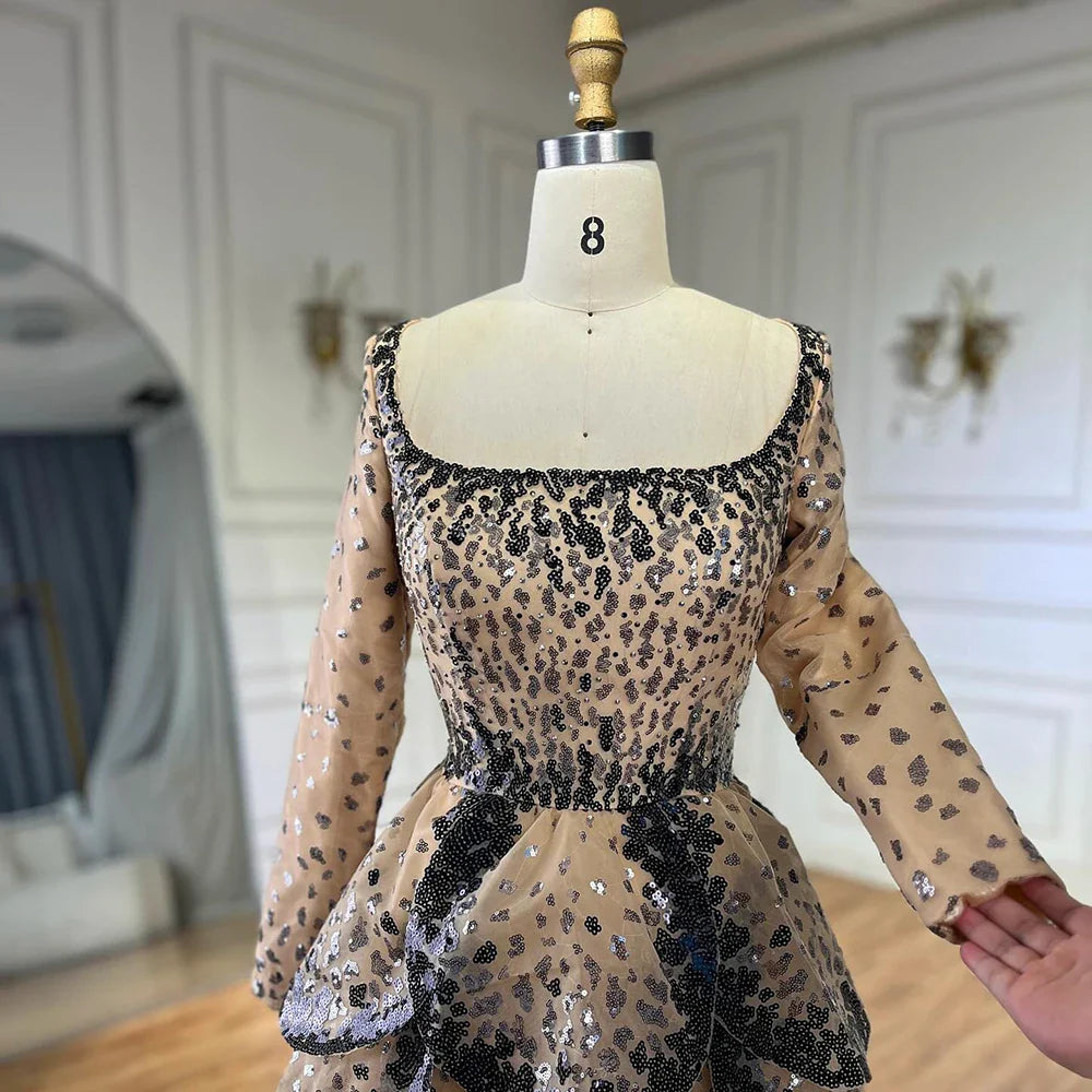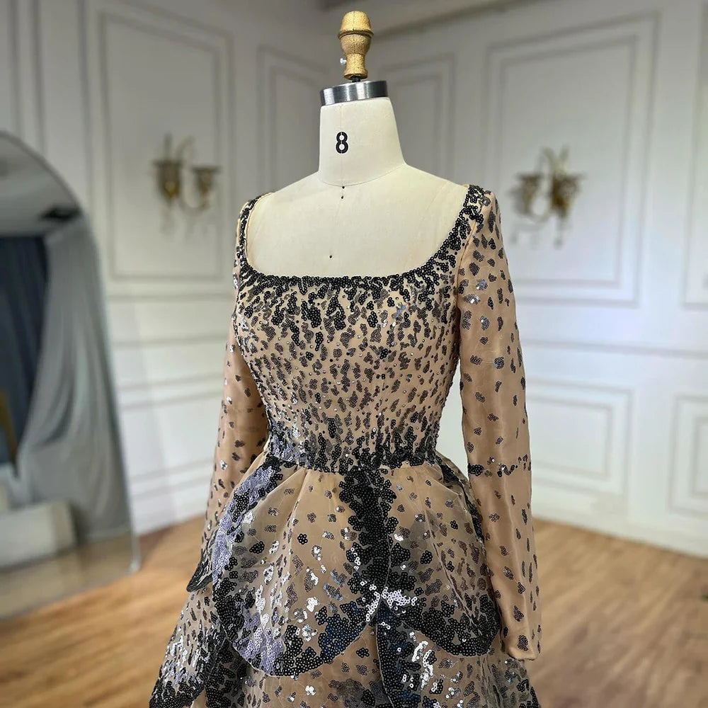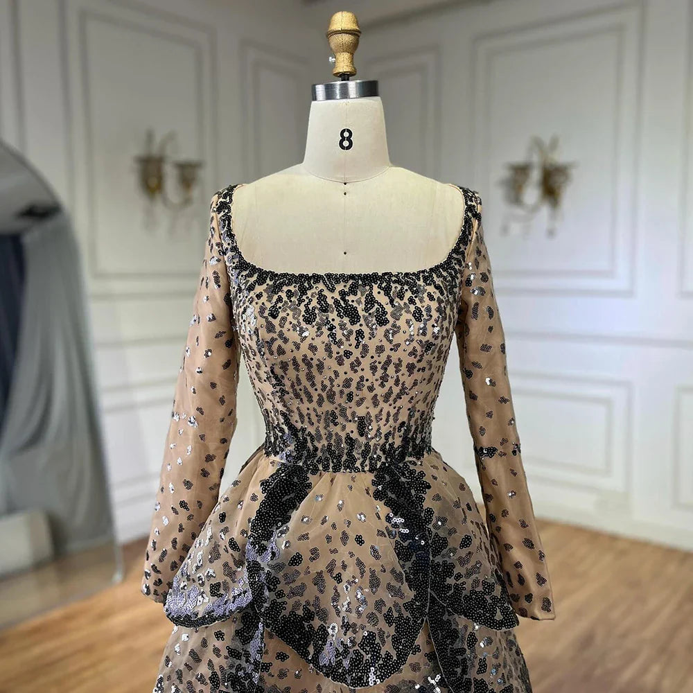 Luxury Black Nude Sequin Evening Dress with Long Sleeves LA72505B