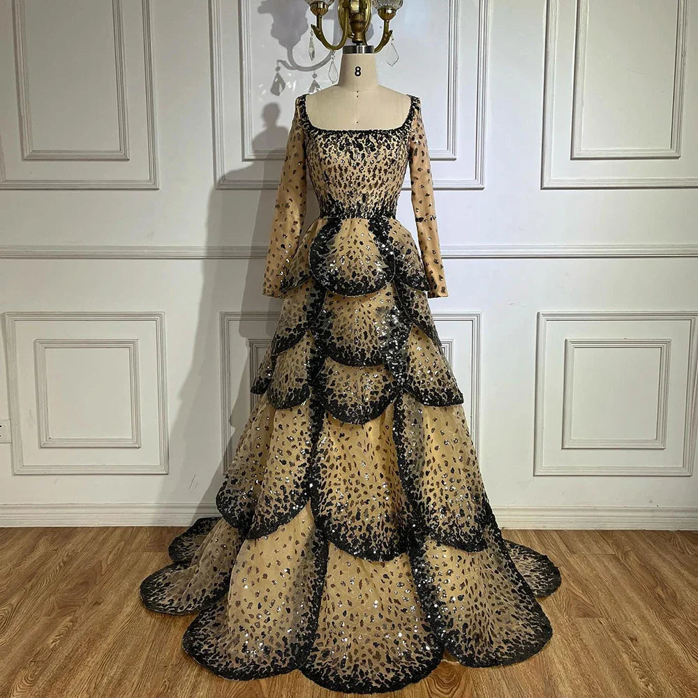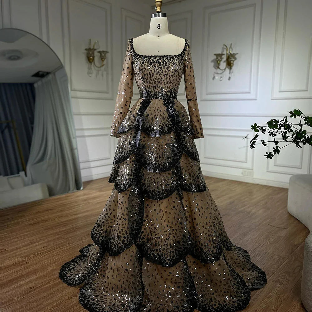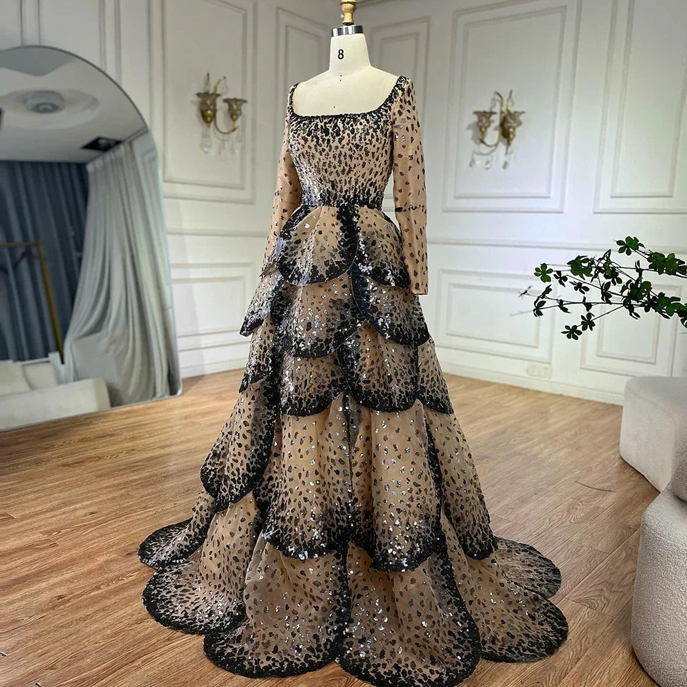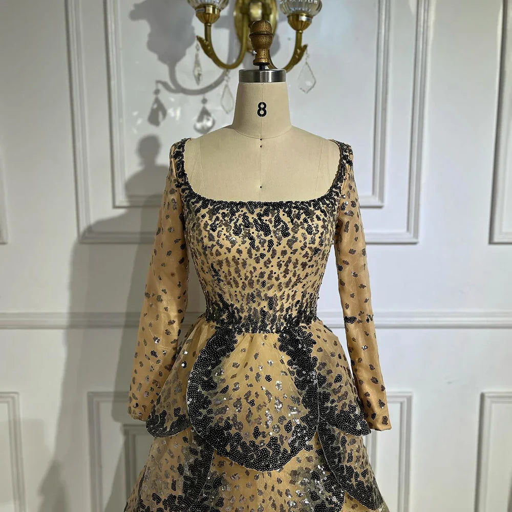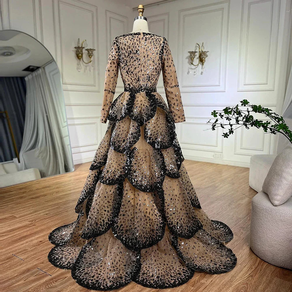 Luxury Black Nude Sequin Evening Dress with Long Sleeves LA72505B