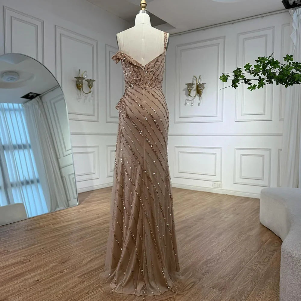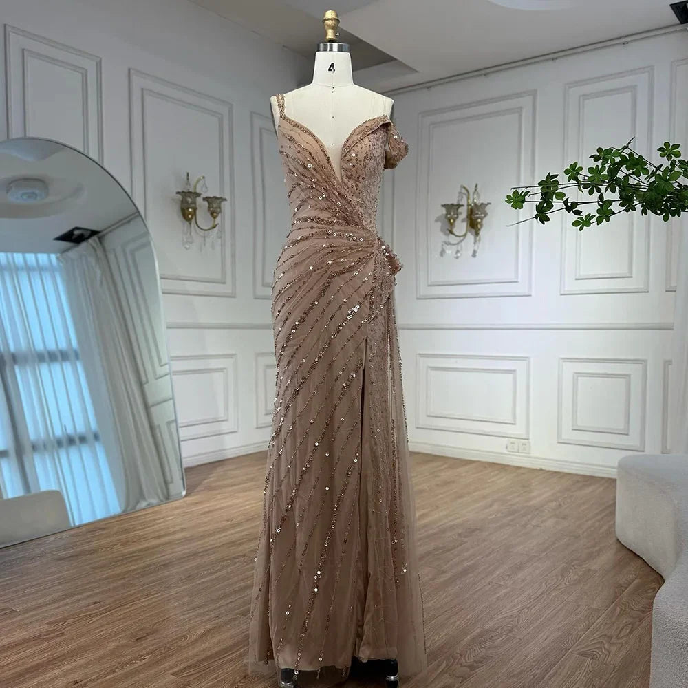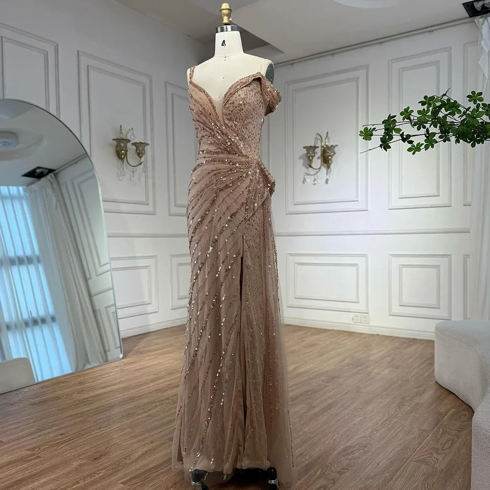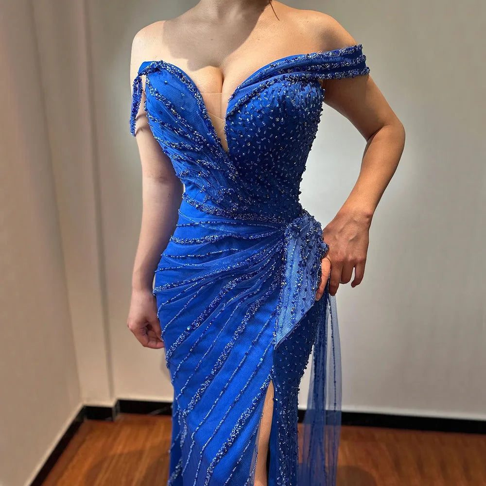 Luxury Blue Beaded Mermaid Evening Dress with Split LA71663