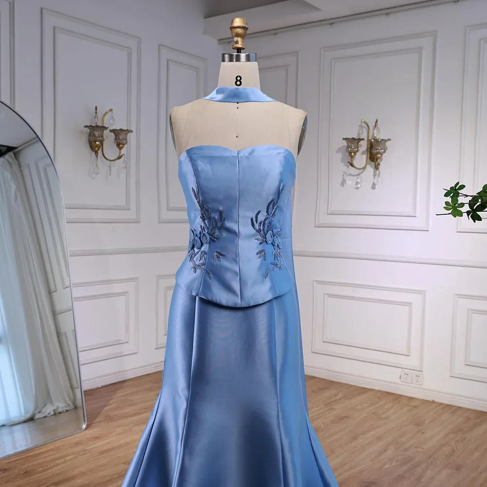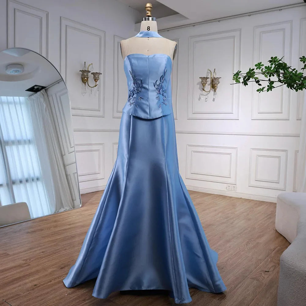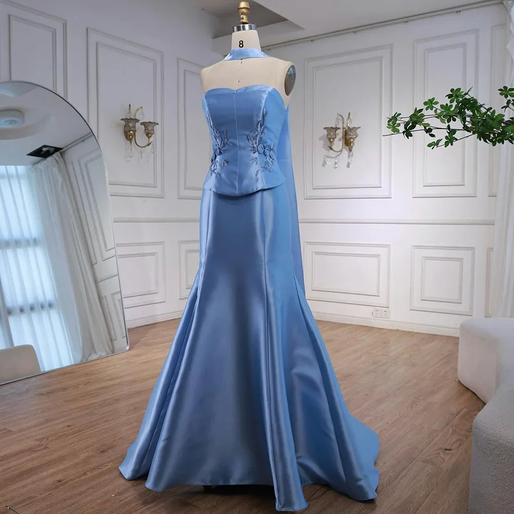 Luxury Blue Satin Mermaid Evening Dress with Long Scarf LA72831