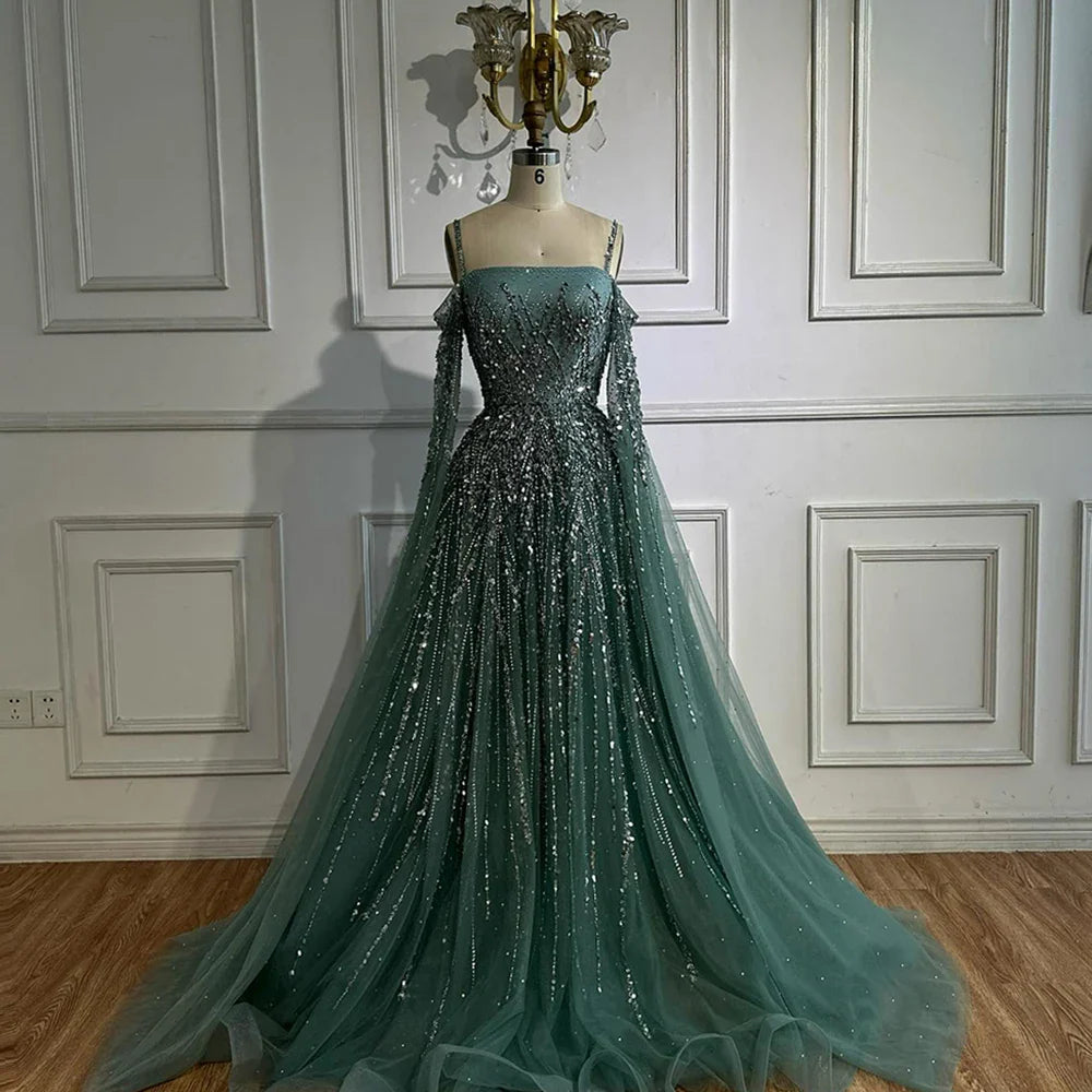 Shop luxury caramel evening dresses with flowing cape sleeves and elegant beading—available in two rich color options, perfect for formal events and special occasions.