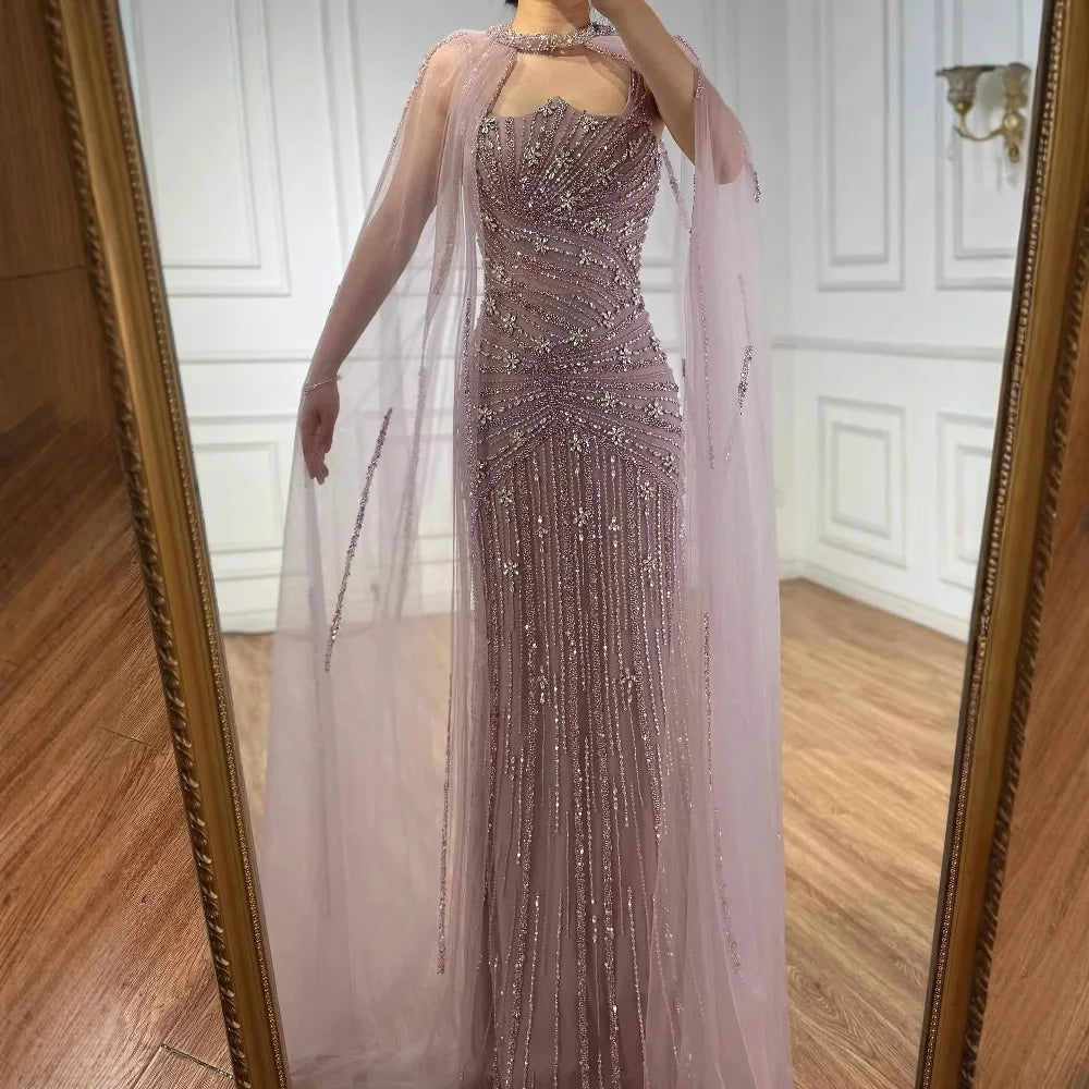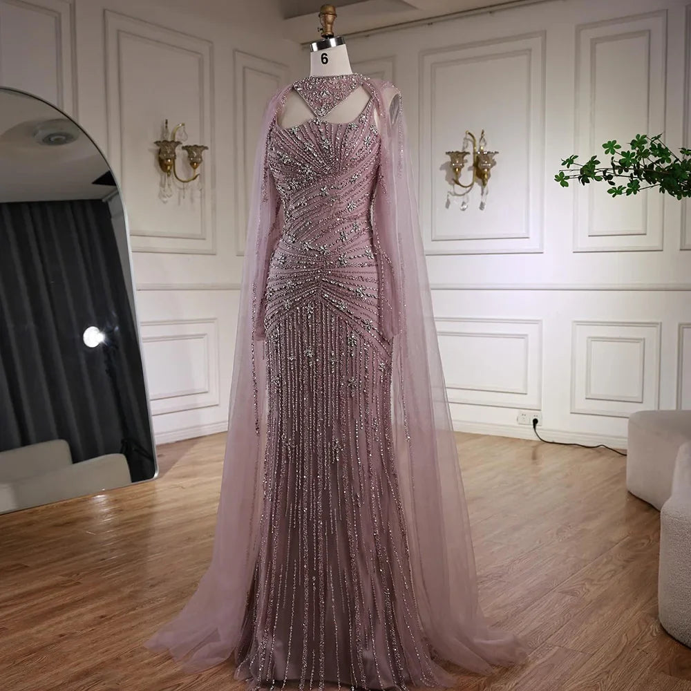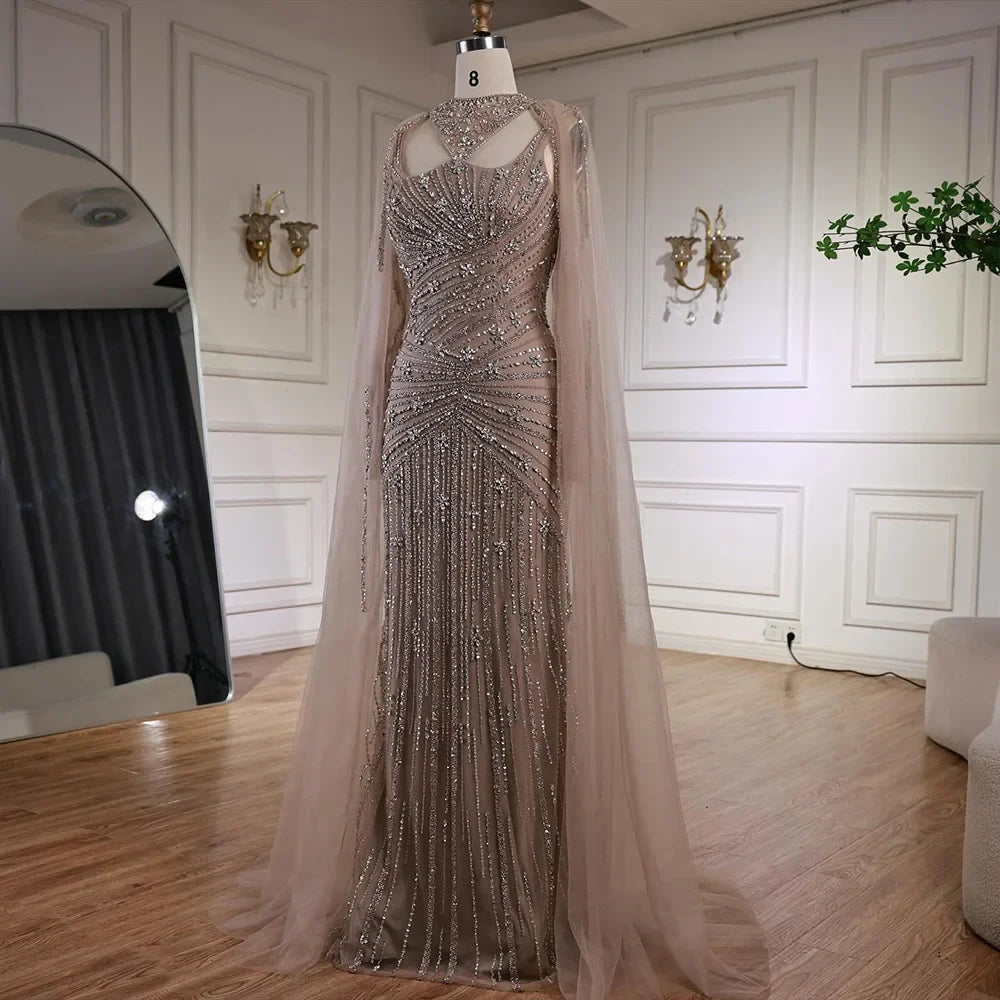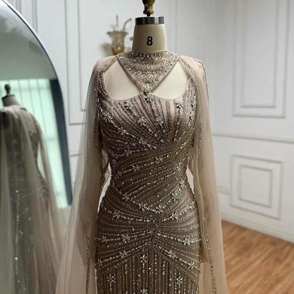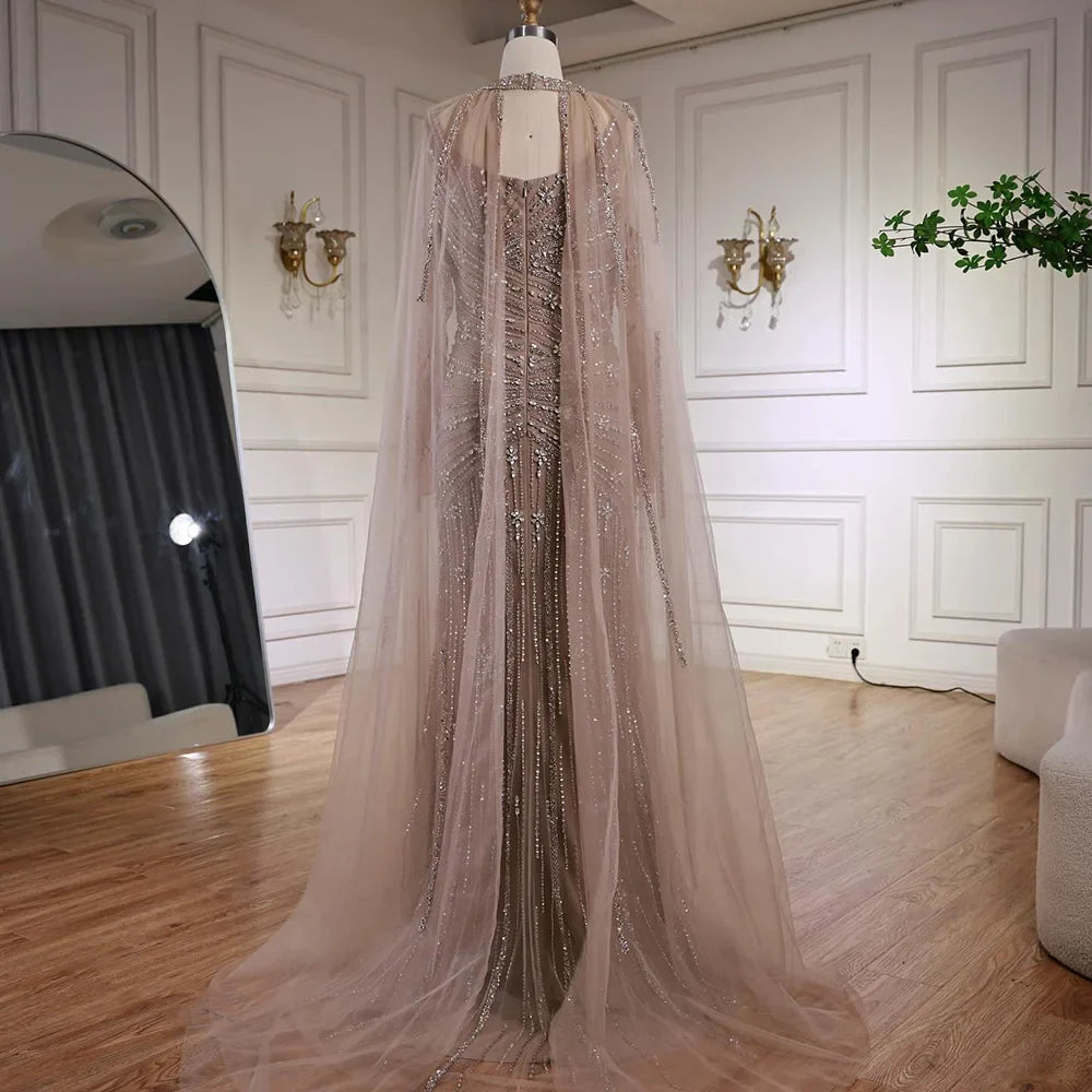 Luxury Caramel Mermaid Evening Dress with Cape Sleeves LA73052