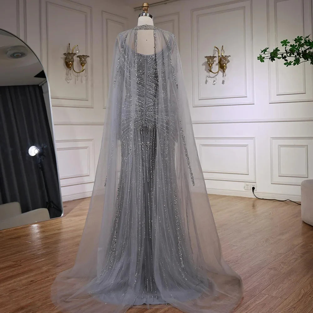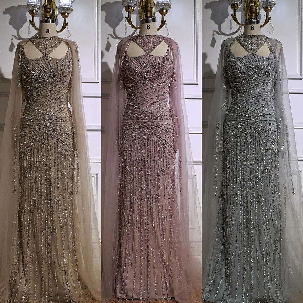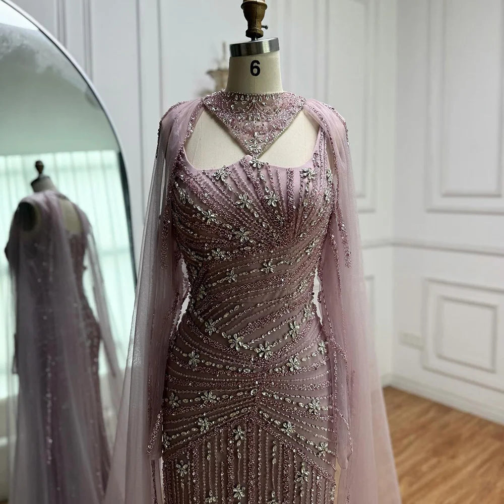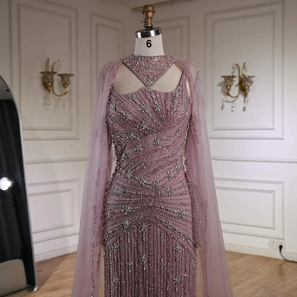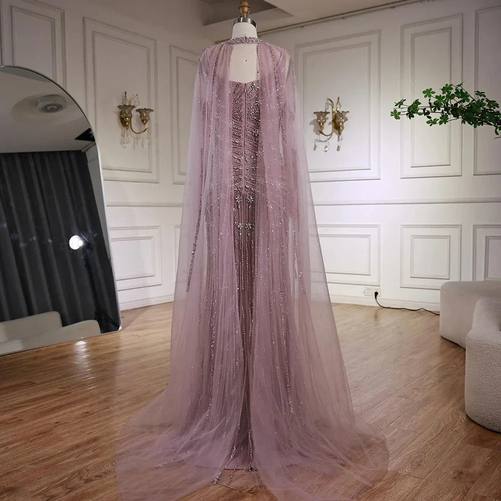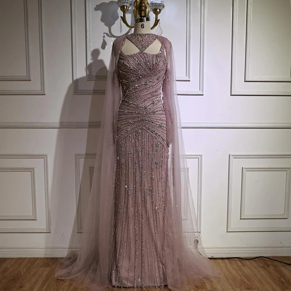 Luxury Caramel Mermaid Evening Dress with Cape Sleeves LA73052