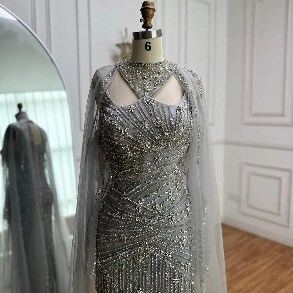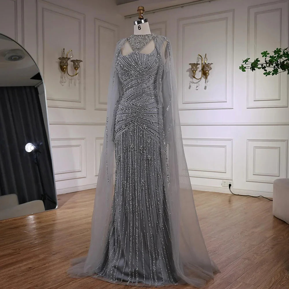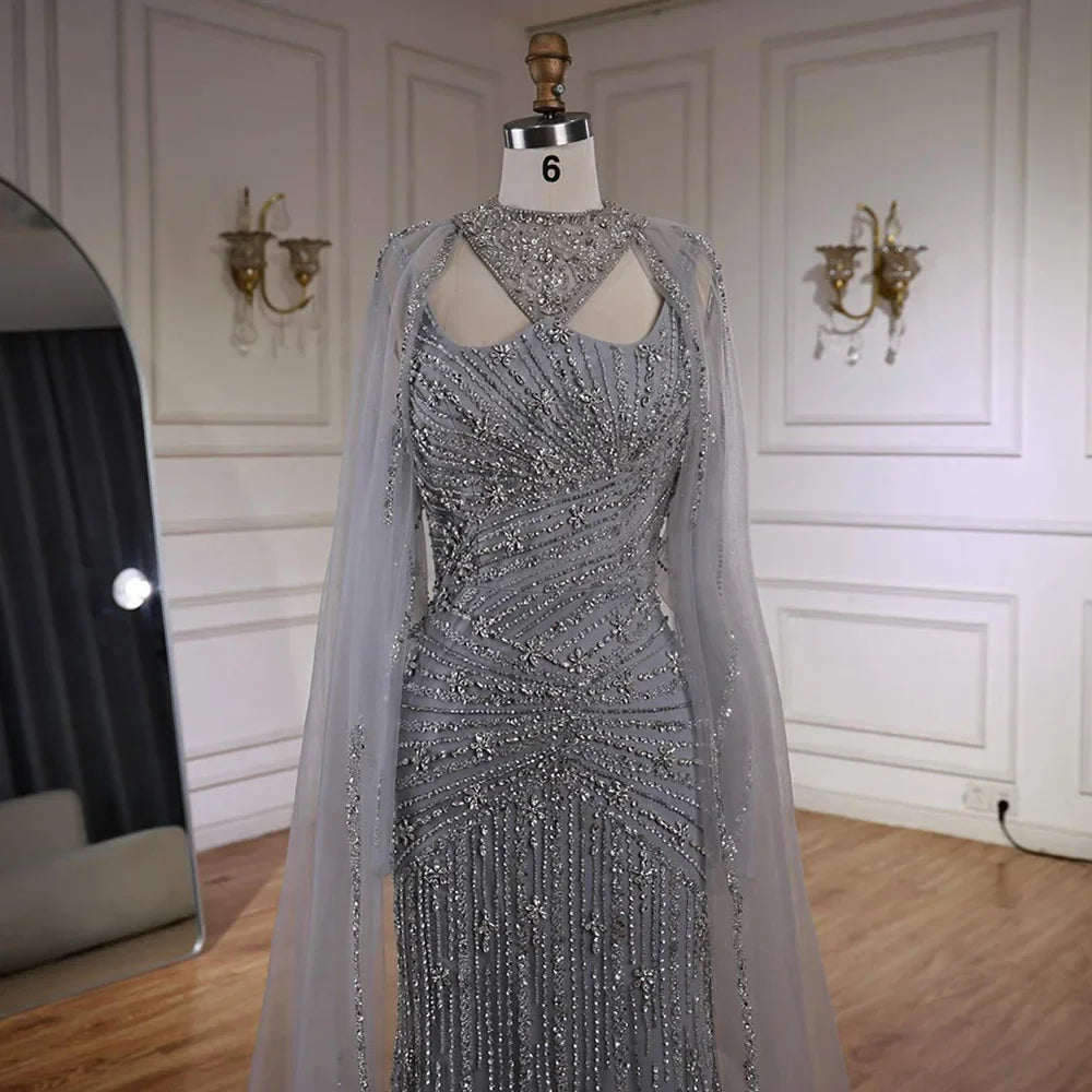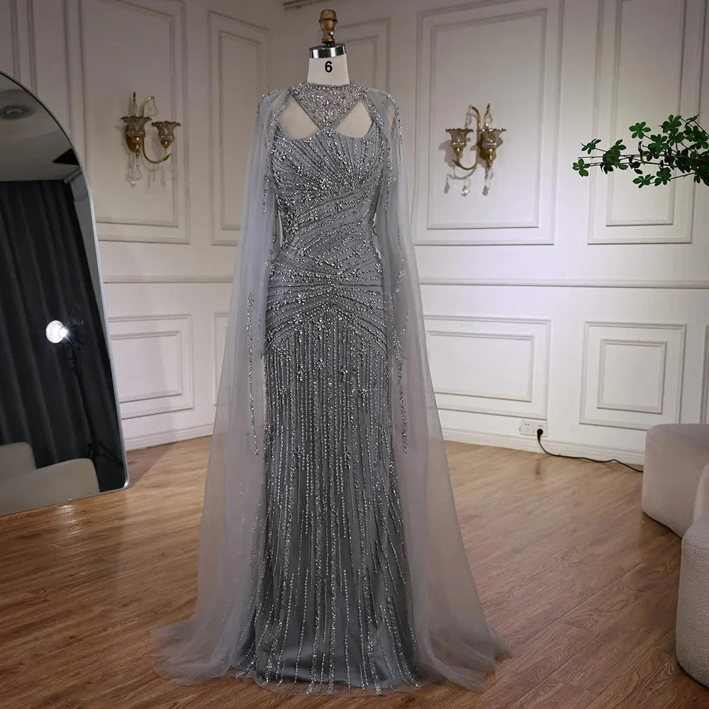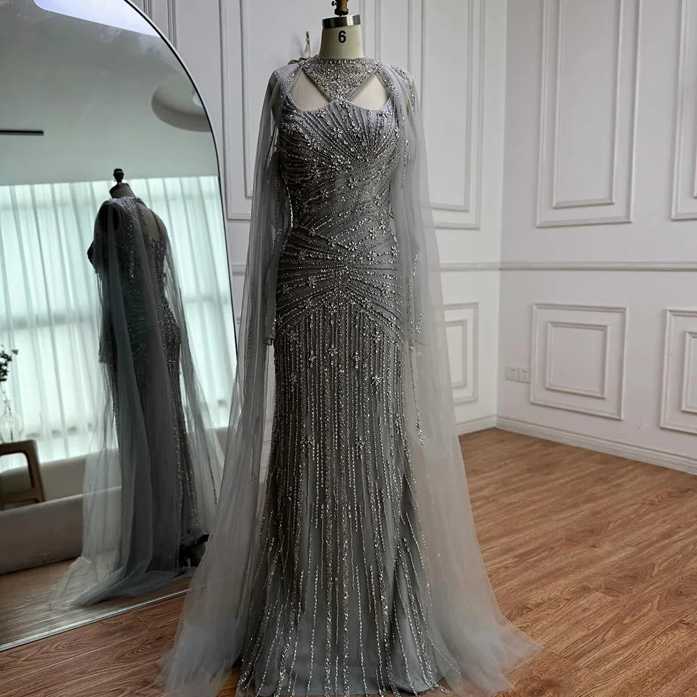 Luxury Caramel Mermaid Evening Dress with Cape Sleeves LA73052