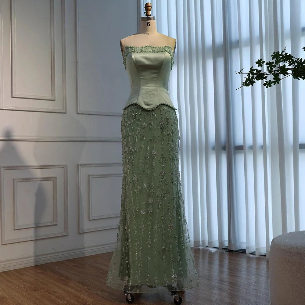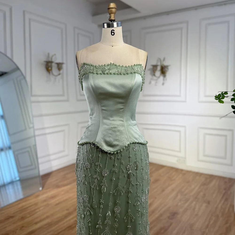 Luxury Caramel Satin Beaded Evening Dress with Corset Bodice LA72805C