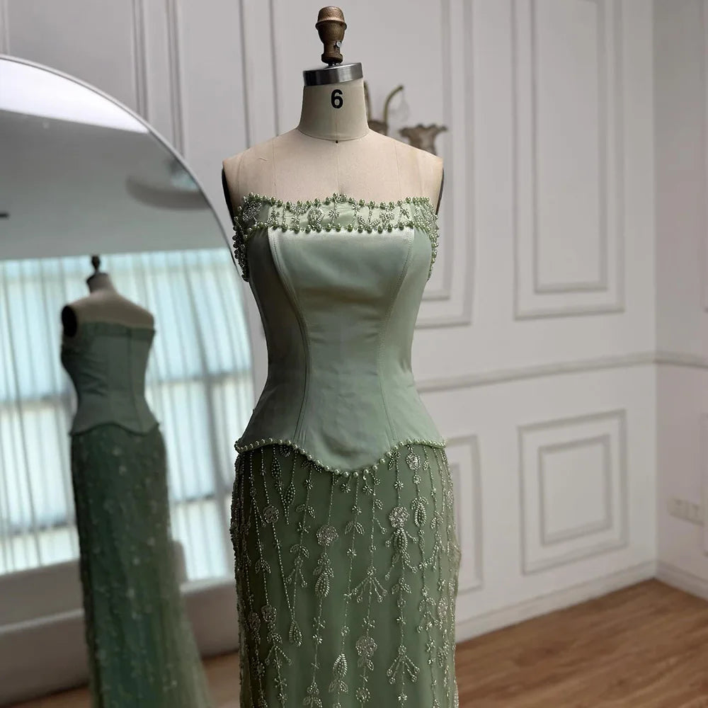 Stunning caramel satin evening dress with intricate beadwork and a structured corset bodice. Ideal for formal events, showcasing elegance and confidence.