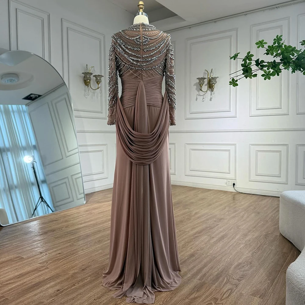 Luxury Designer Modest Brown Stretch Material Mermaid Evening Dress LA72993
