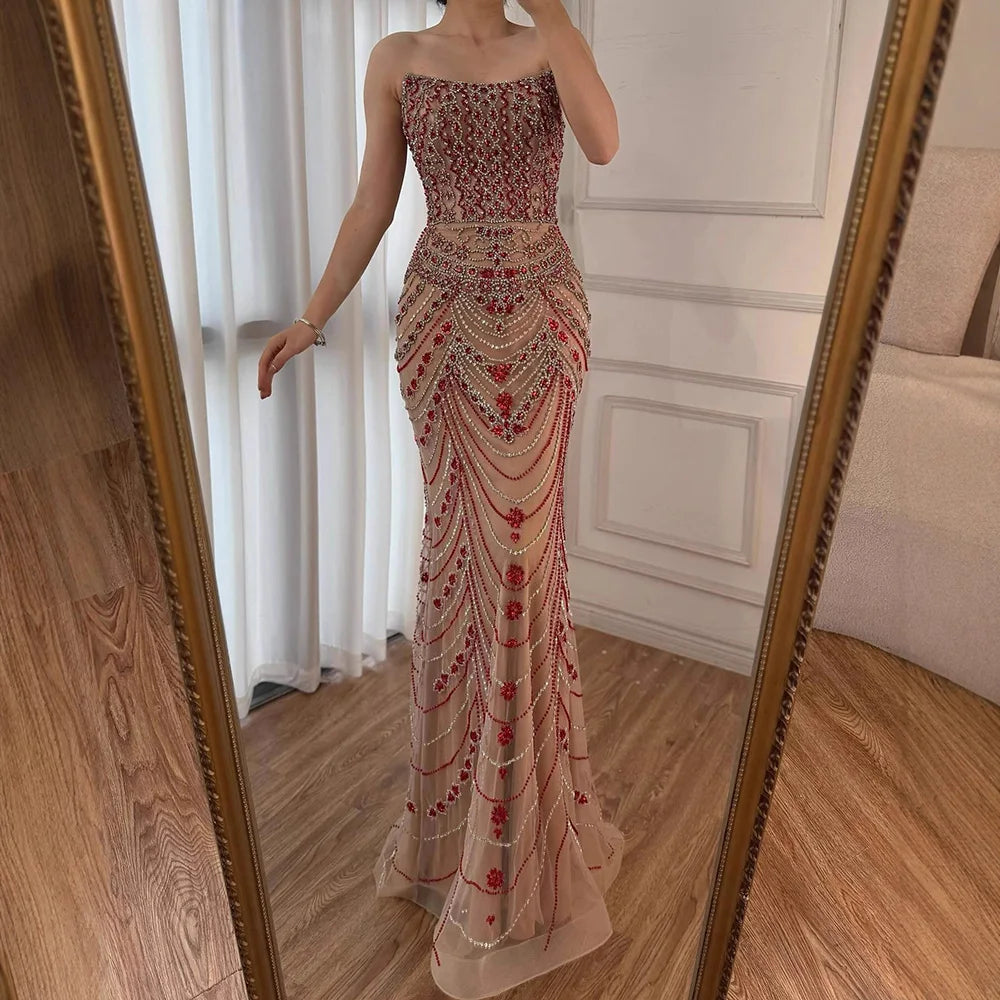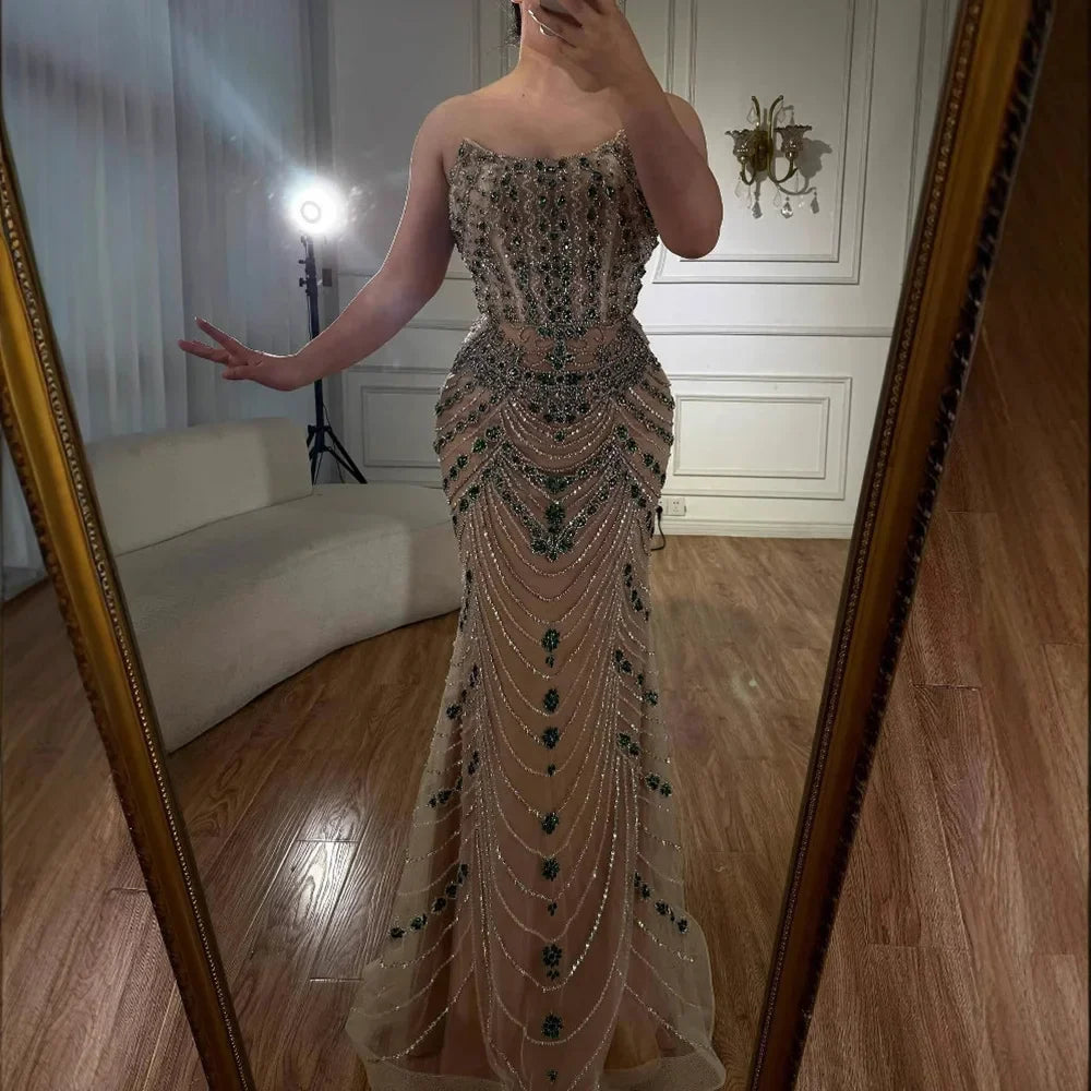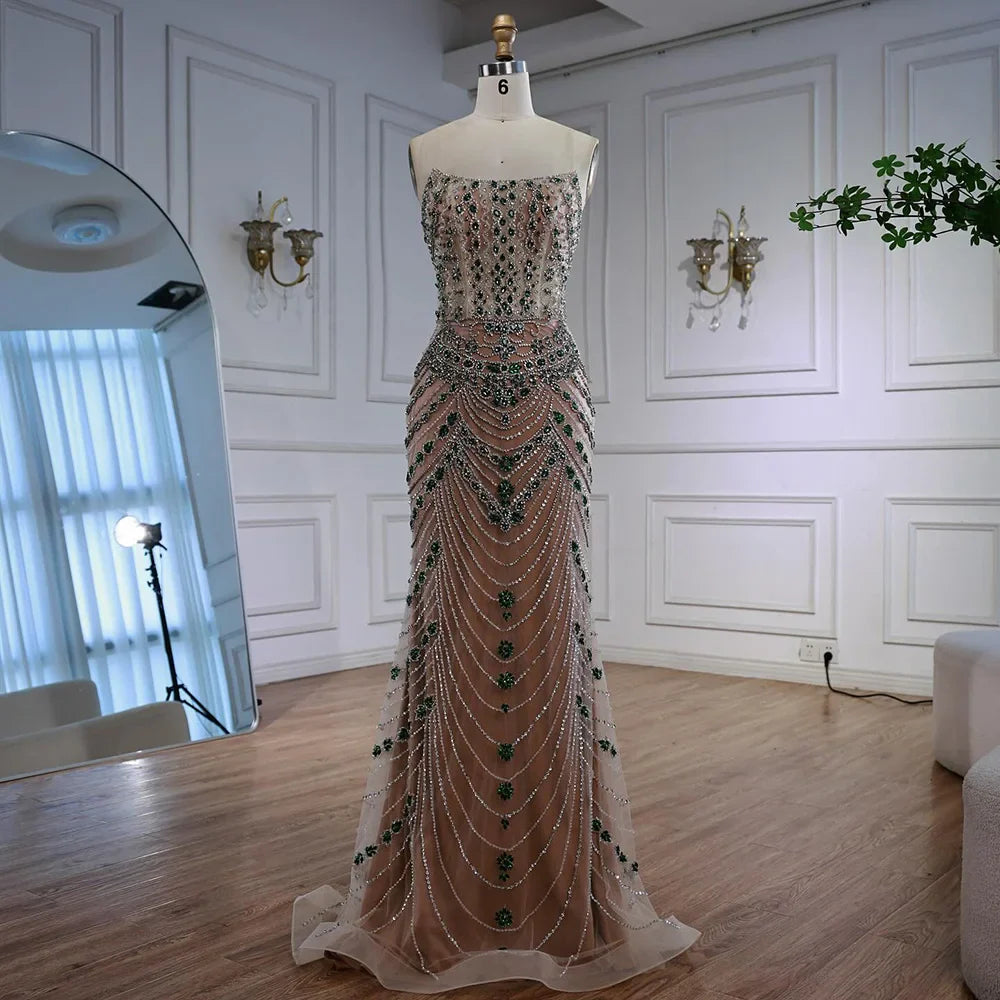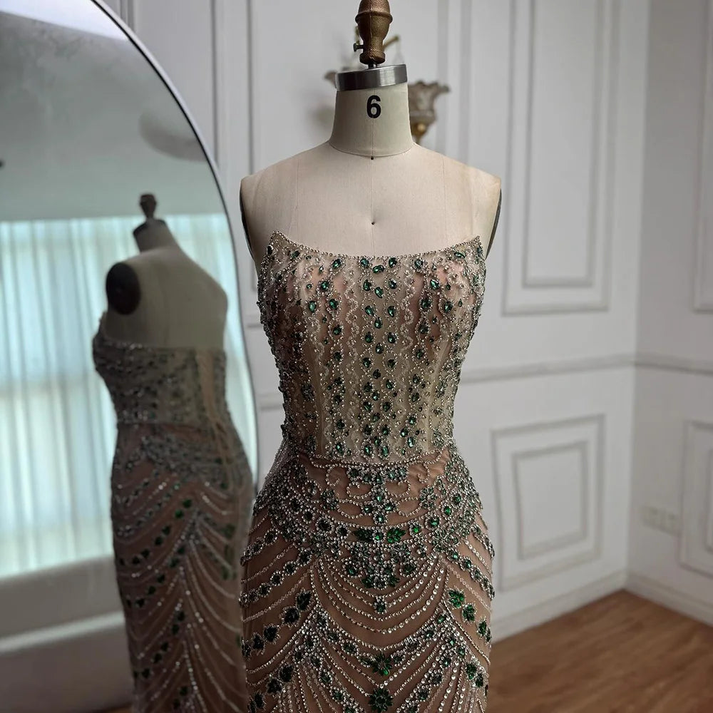 Luxury Green Beaded Saudi Arabic Evening Gown for Formal Occasion LA72842