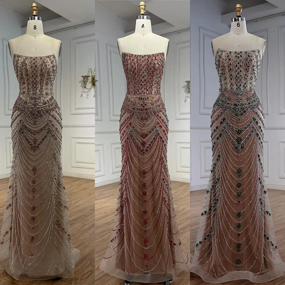 Elegant green Saudi-style evening gown featuring intricate beading and flowing silhouette. Perfect for galas, weddings, or formal occasions.