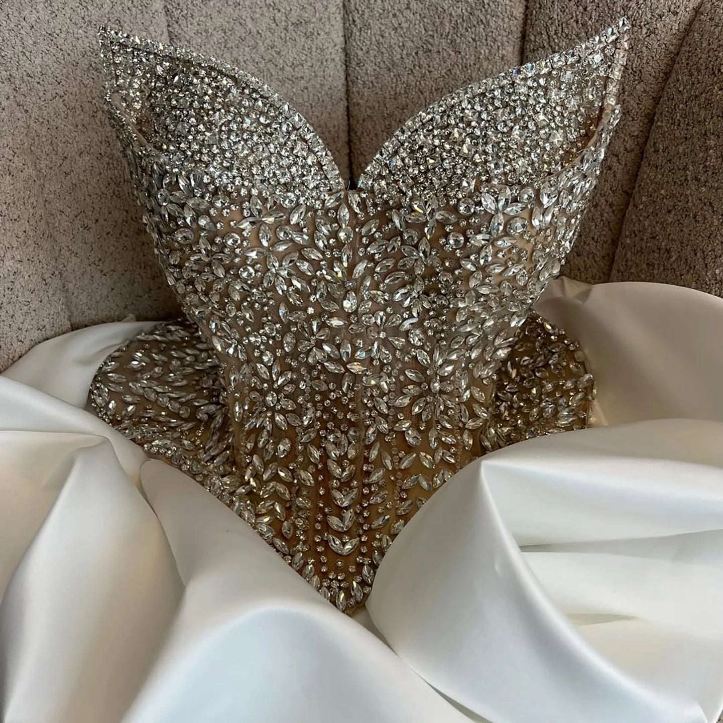 Elegant Kosovo-style two-piece crystal A-line evening gown LA73209, perfect for wedding guests or formal celebrations.