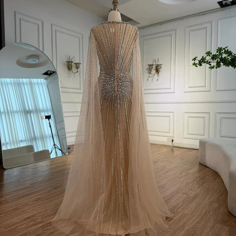 Luxury Nude Beaded Evening Dress with Cape Sleeves LA72575C