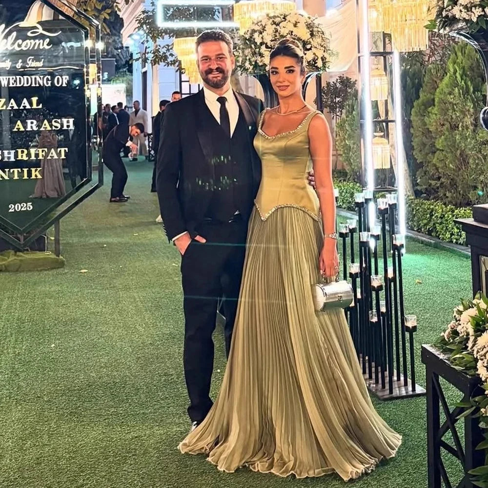 Elegant sage green satin A-line prom dress LA73169, designed for women attending 2025 formal occasions, weddings, and special parties.