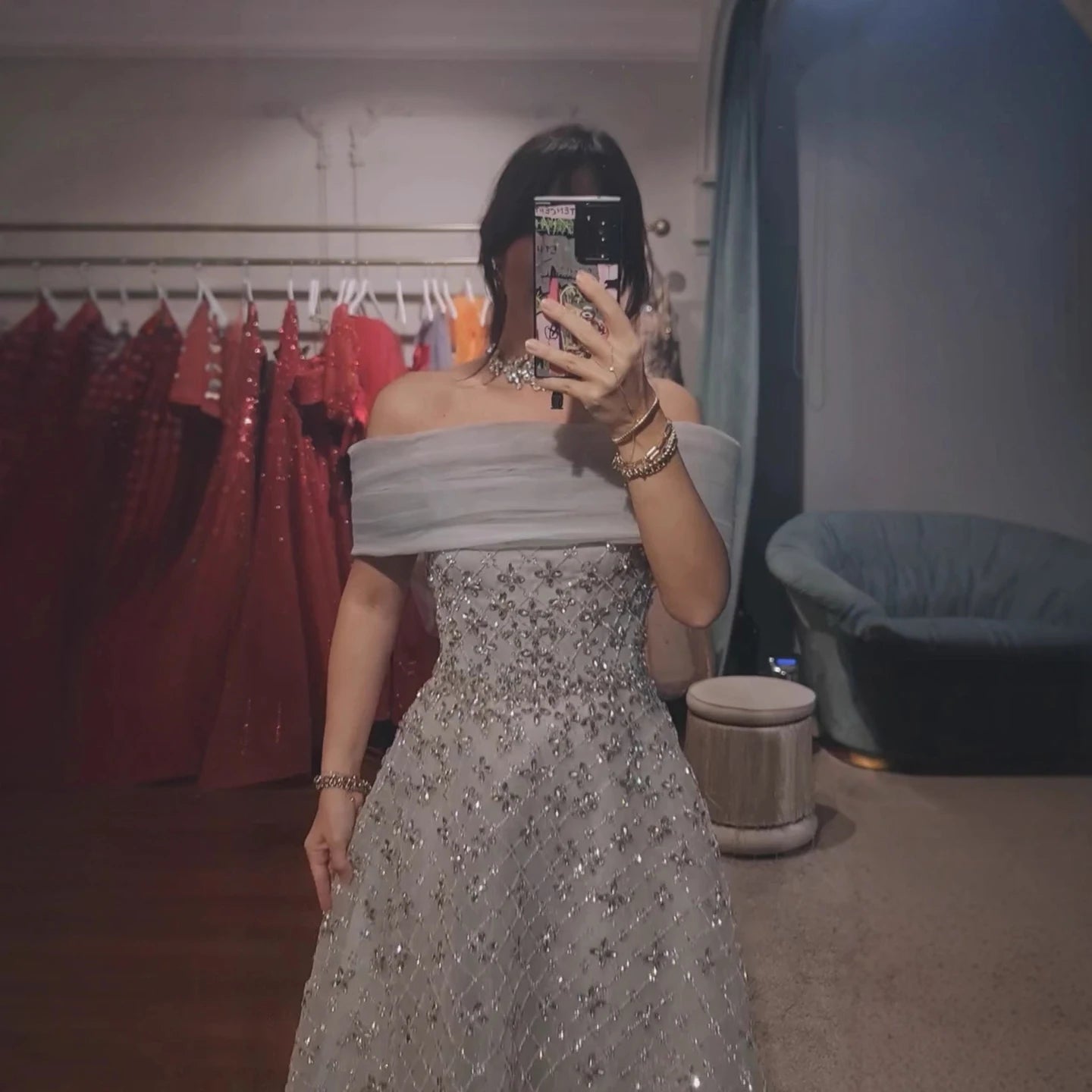 Luxury Silver Gray Turkish Crystal Beaded Evening Dress LA73062A