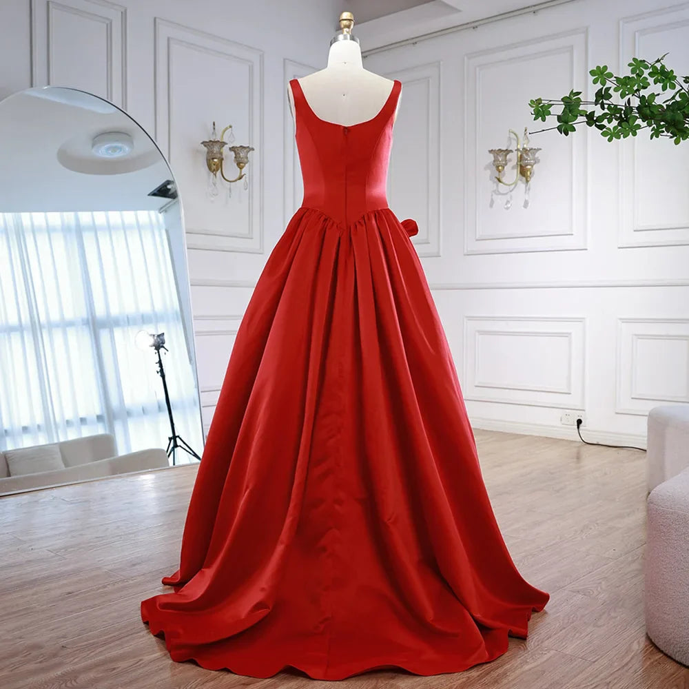 Red A Line Evening Dress 3D Flowers Sleeveless Backless Gown LA73035