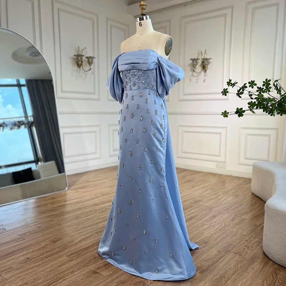 Luxury Baby Pink Off Shoulder Evening Dress for Women Party LA72414