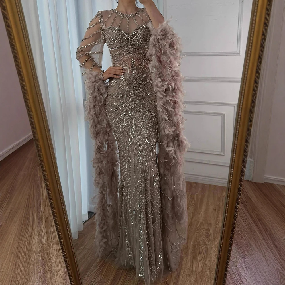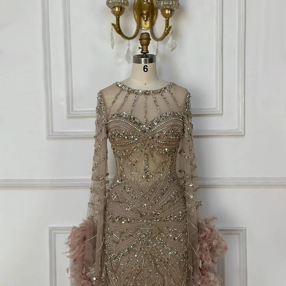 Luxury Caramel Crew Neck Beaded Mermaid Evening Dress LA72708A