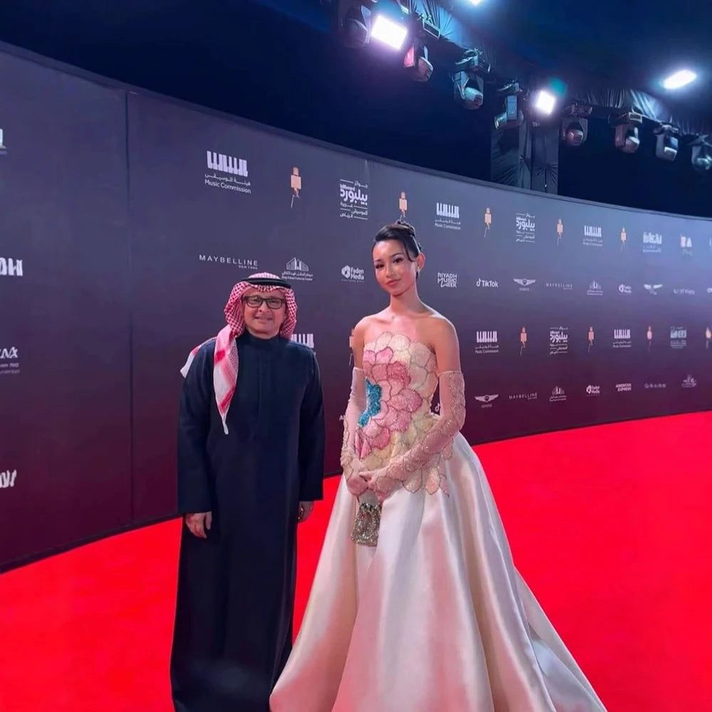 Chic satin evening gown with strapless design, sequin bodice, and detachable sleeves. Perfect for formal parties or prom nights.