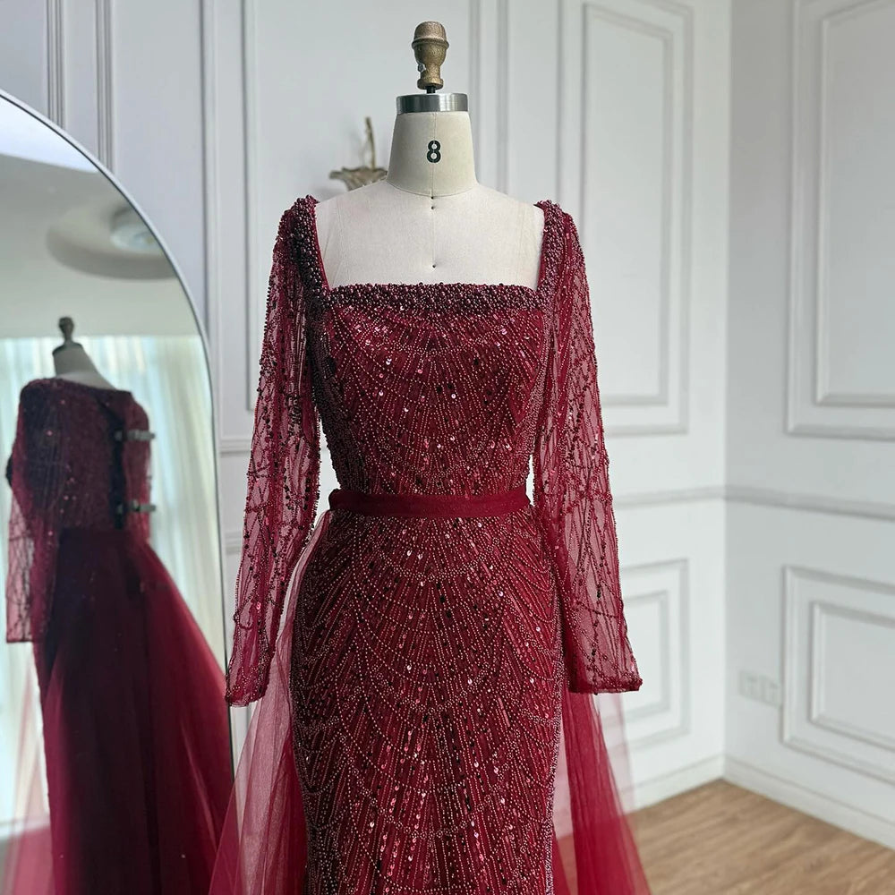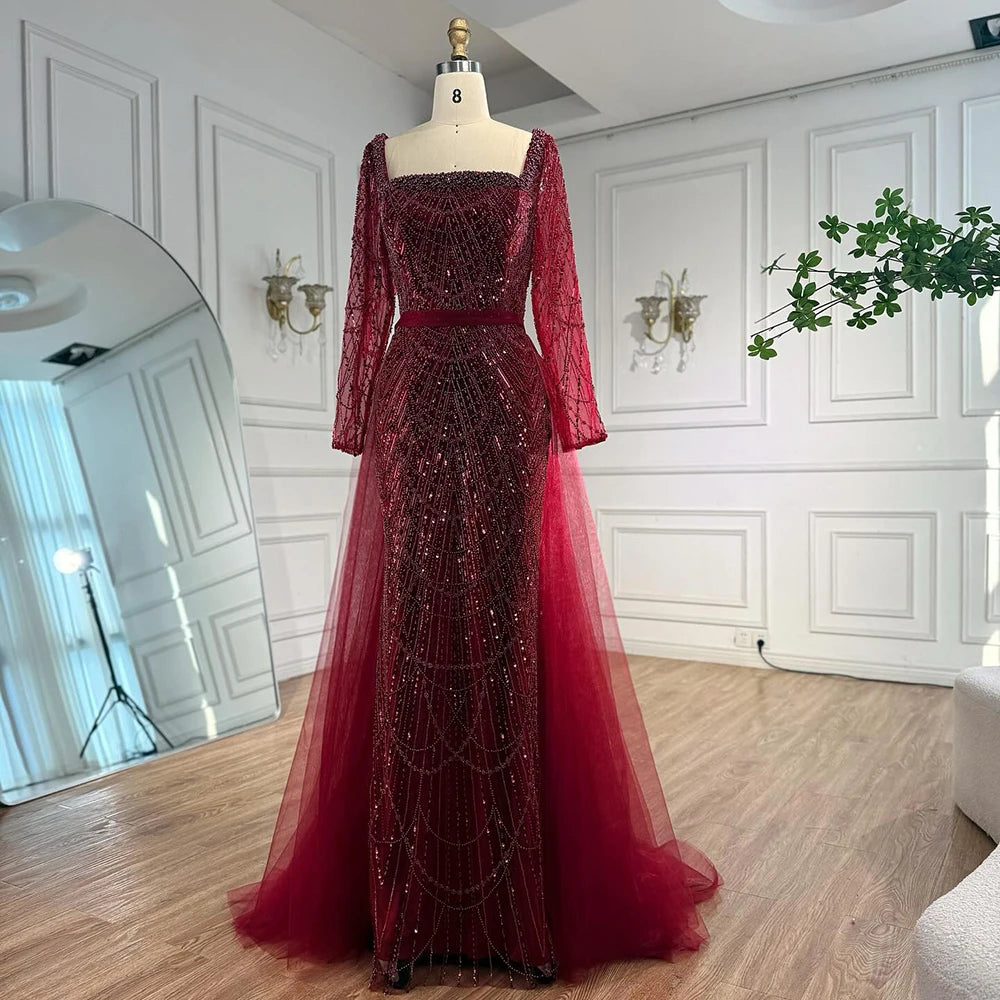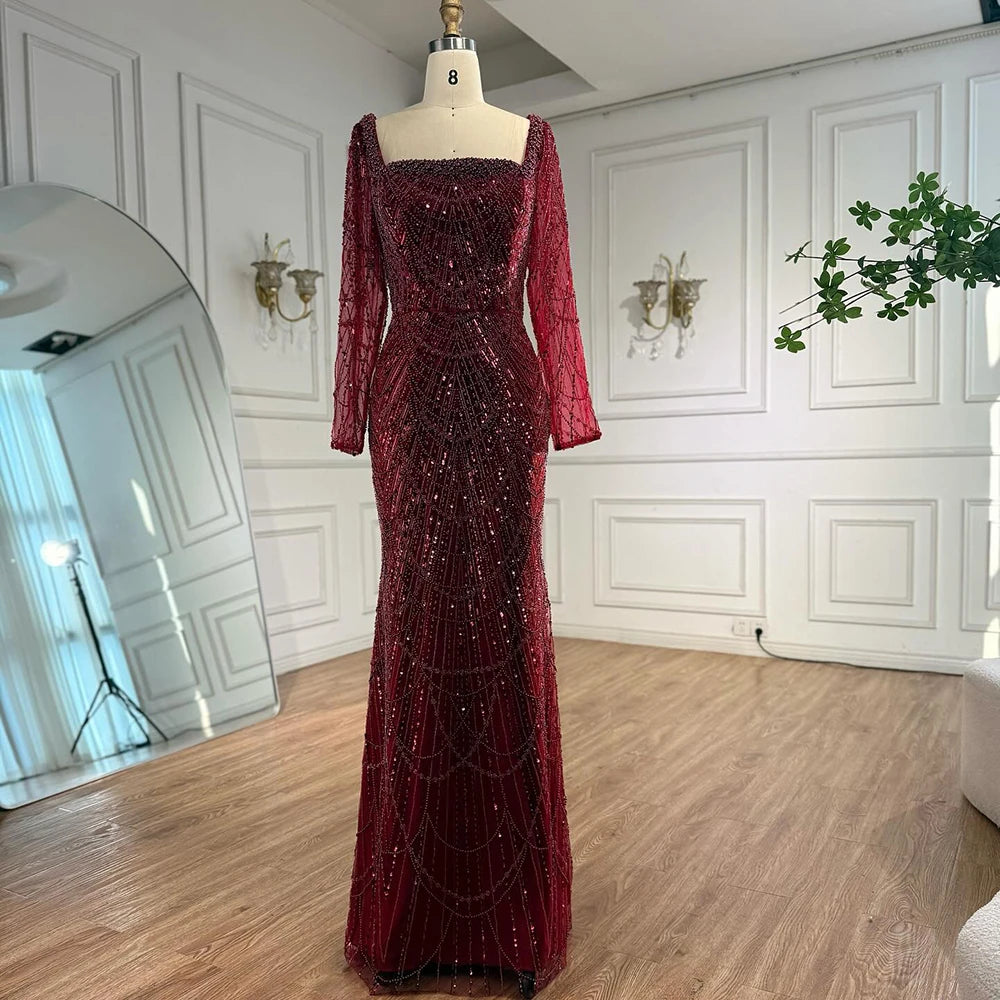 שמלת ערב מרובעת כחולה עם שרוולים ארוכים מידה גדולה LA72032N