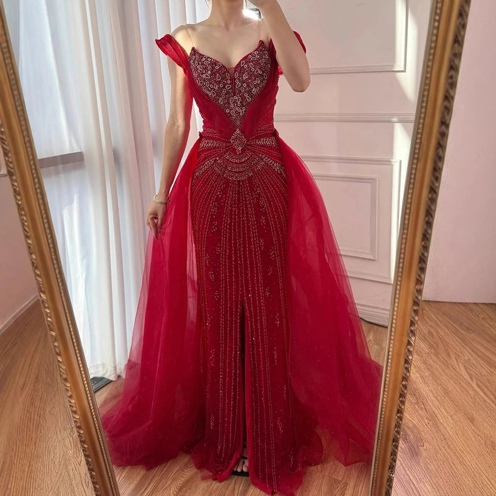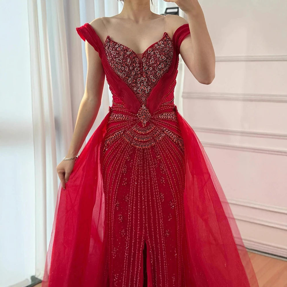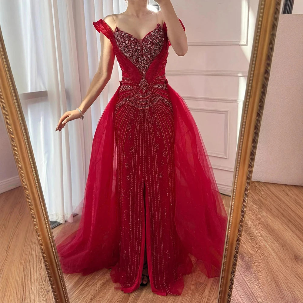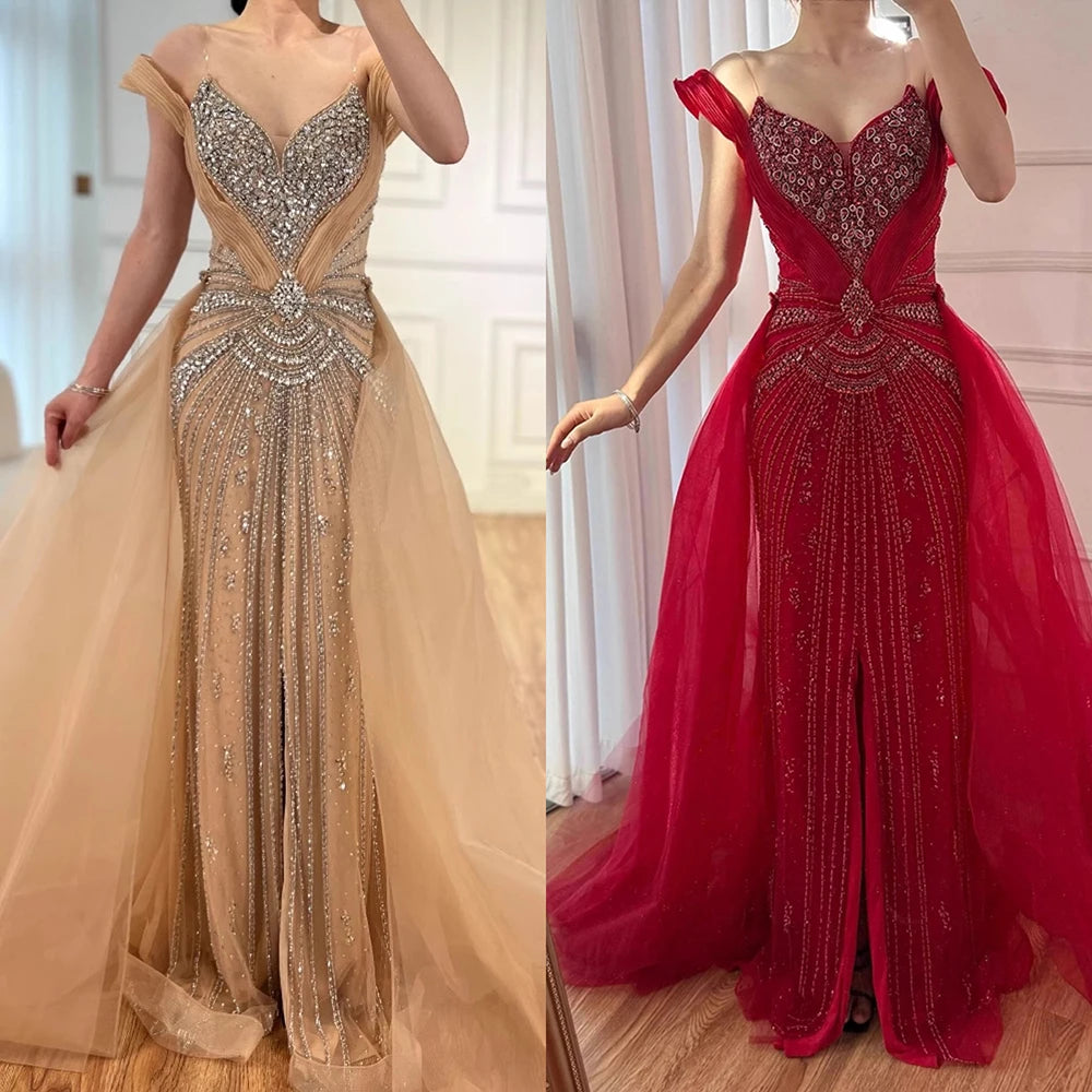 שמלת ערב יוקרתית בתולת ים עם חרוזים בגוון עירום, חצאית עליונה ושסע LA73034