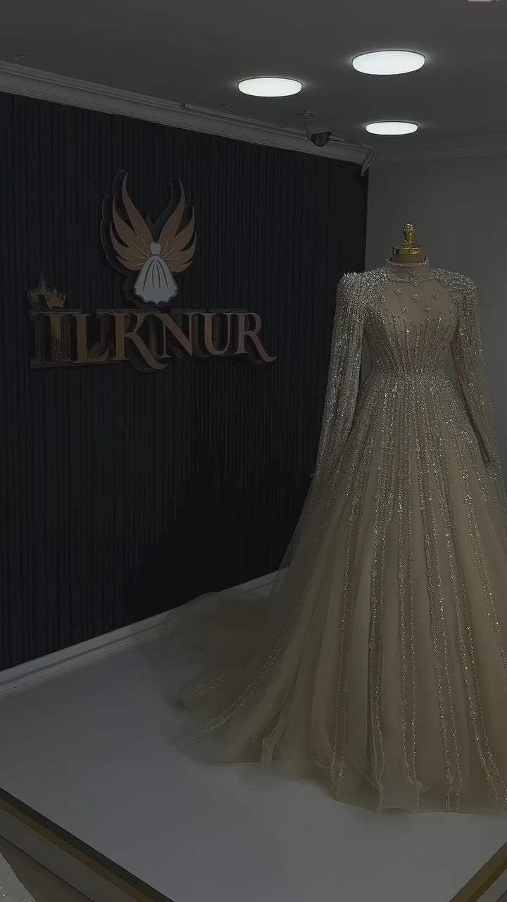 A luxury nude muslin modest beaded evening dress with elegant cape, perfect for wedding party and formal events. Model LA73271.