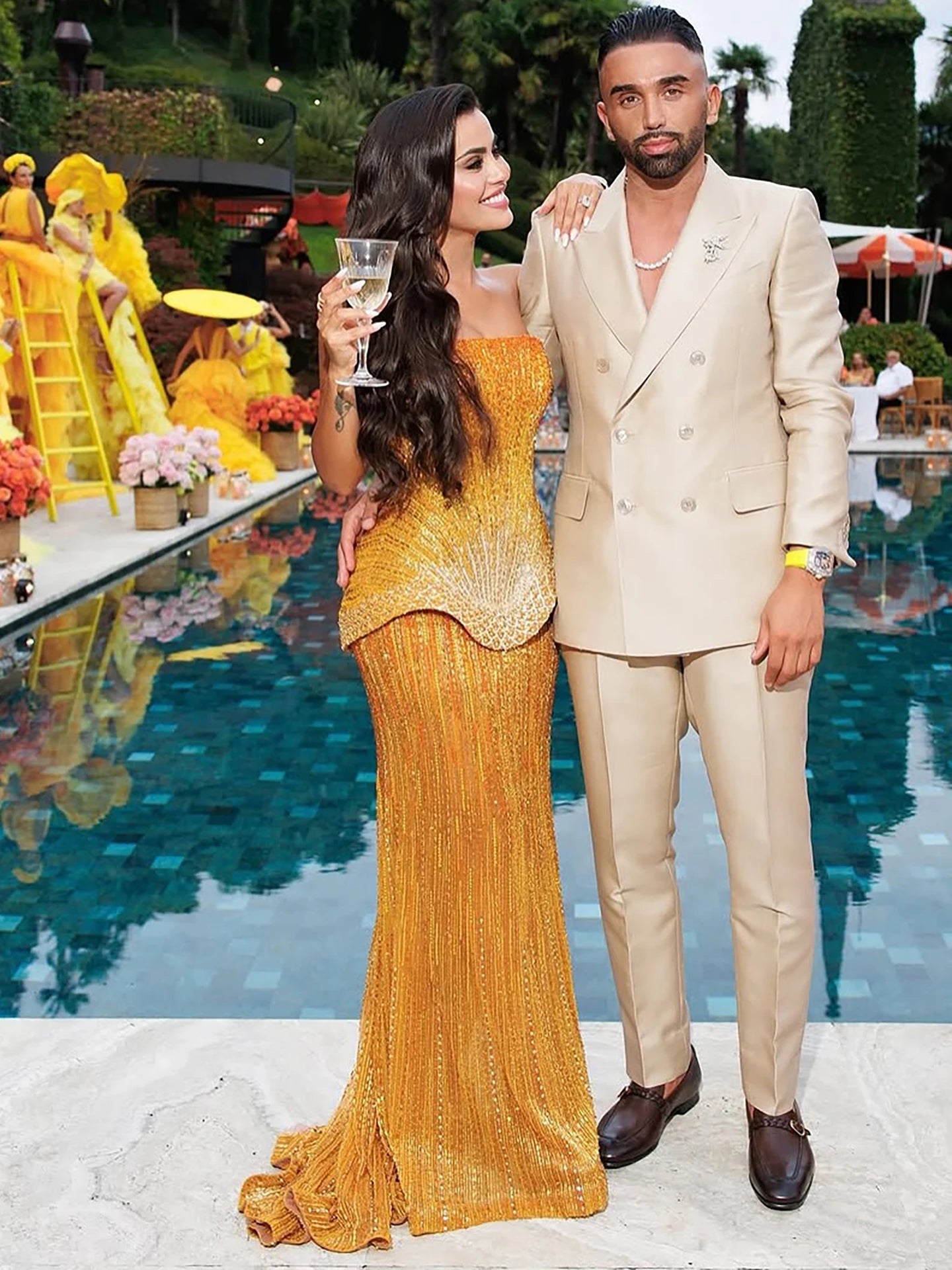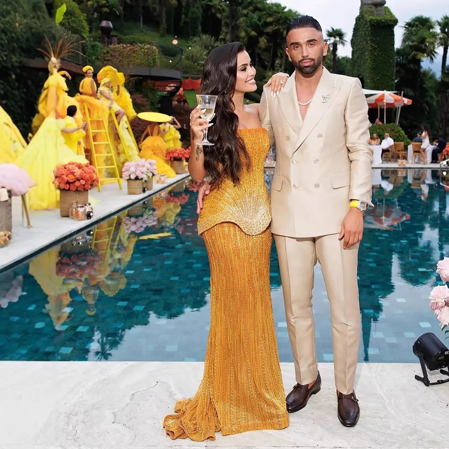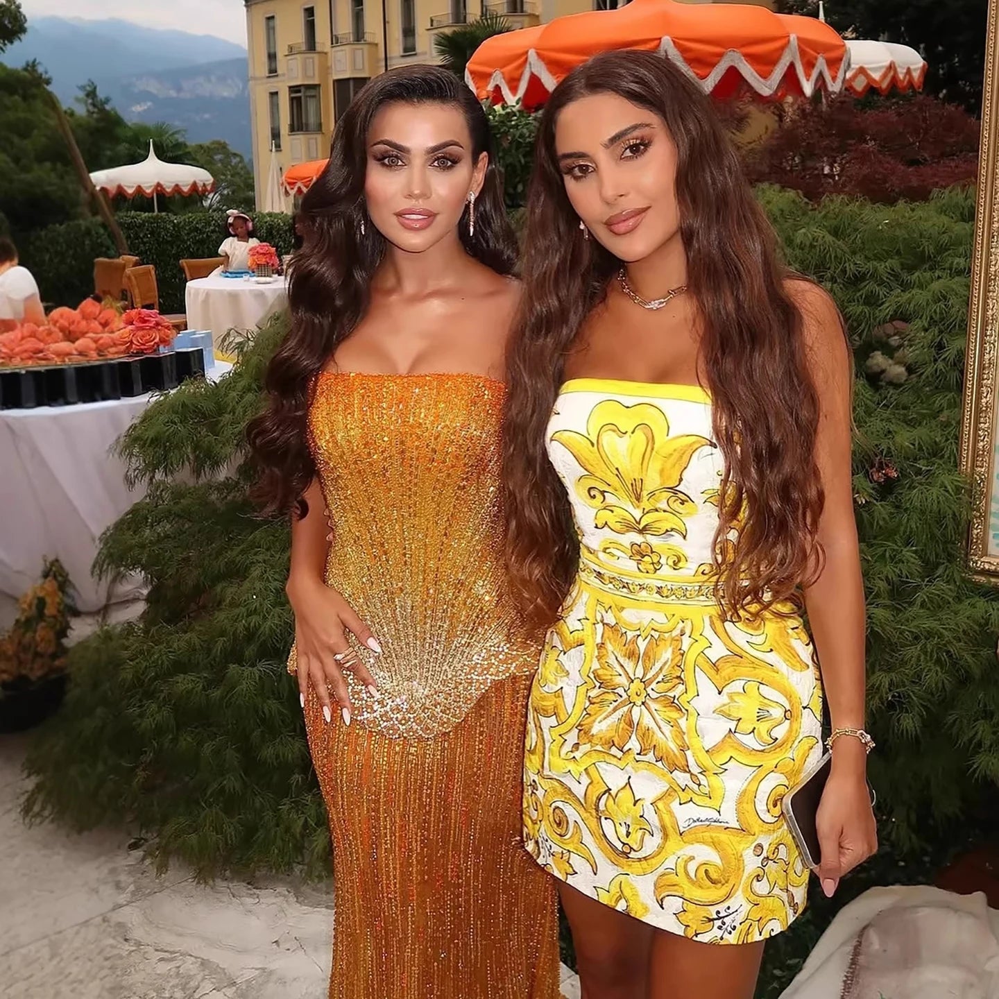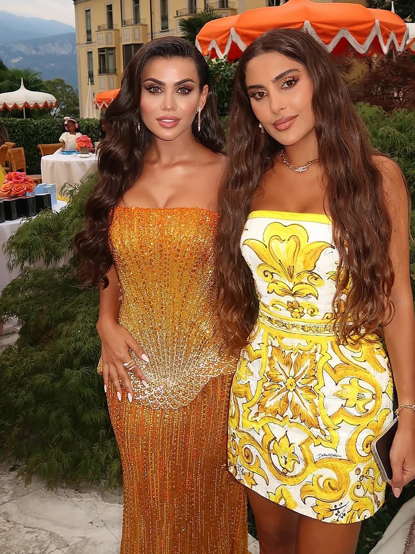 Arabic orange two pieces corset evening dress designed for elegant formal events and evening occasions.